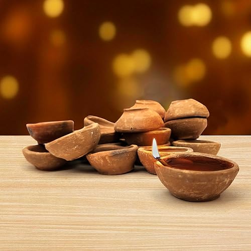 Terracotta Divas Set of 24 Piece Hand made Round Shaped Diyas. Beautify your celebration with the help of Theas Diya's . DIYAS for Specially Daily Pooja and Diwali pooja. Light up your home with different kinds of DIYAS for the entrance living rooms and bedrooms. They are highly pretty. Widely used across households hotels restaurants and offices. or simply decorate your pooja thali with this small Diya's