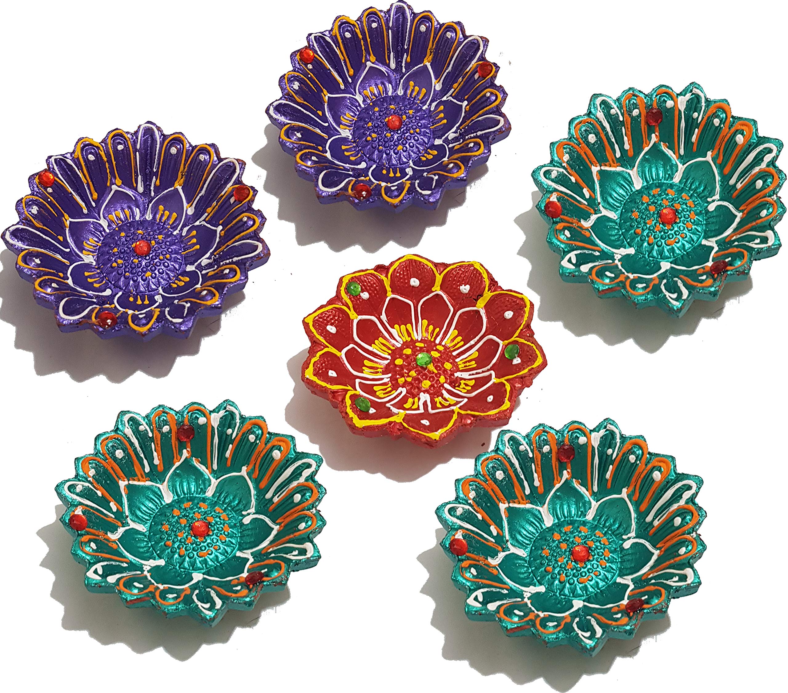 Pure Source India Terracotta Decorative Diyas (Multi_2.9 Inch X 3.1 Inch X 0.9 Inch)