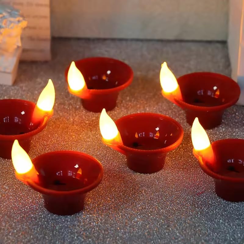 RavSo Water Sensor Led Diyas Candle with Water Sensing Technology E-Diya, Warm Orange Ambient Lights, Battery Operated Led Candles for Home Decor, Festivals Decoration (Plastic LED Diyas 6) (6)