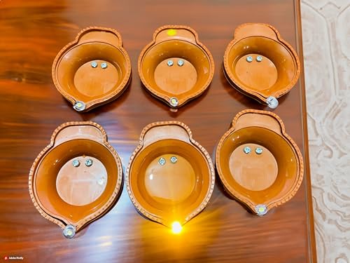 Eco-Friendly Diwali LED Water Diyas - Set of 6 Flameless Brown Decorative Lights - Waterproof Acrylic Design