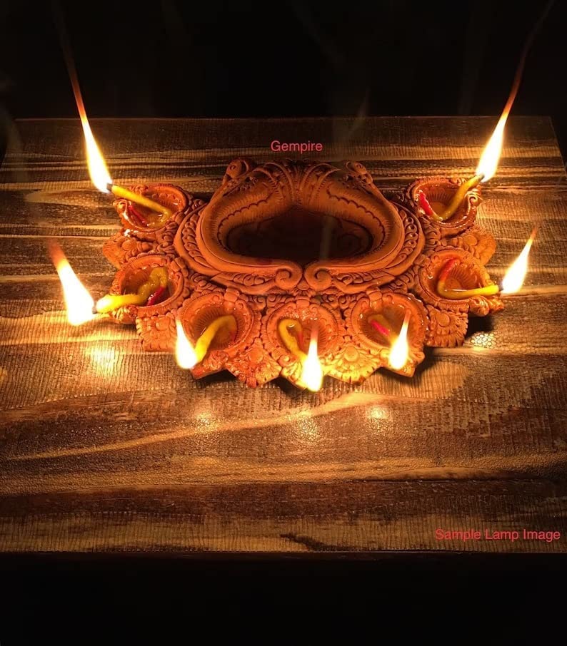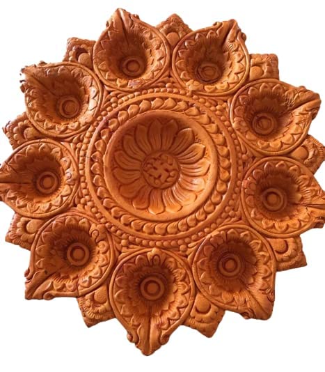 • Material : Terracotta/Earthen Clay A traditional handmade decorative mitti 7 diya (terracotta clay) best for creating an ambiance during festivals Diwali Pooja parties.