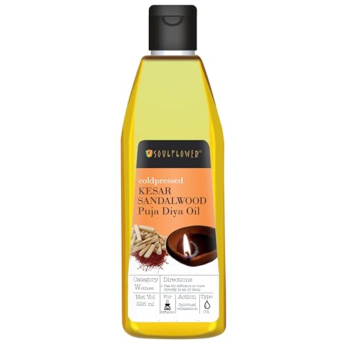 Soulflower Pooja Oil for Akhand Jyot, Hawan, Grah Pravesh & Hindu Rituals | Smokeless Deepam Oil with Saffron & Sandalwood | Spiritual Fragrance for Poojan & Decoration, 225ml