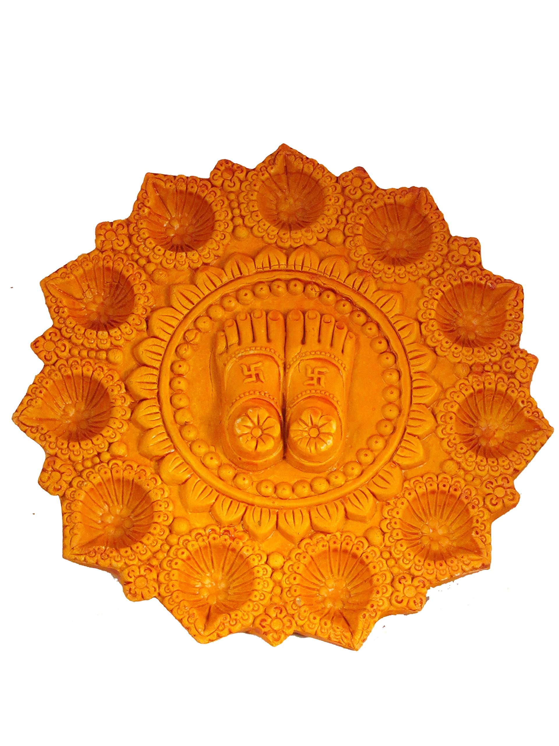 This lamp is a traditional decor that lightens your home with beautiful light which can be used with oil or ghee. Make your festive celebrations little more traditional with our Terracotta Diya. It will add more beauty to your home decor and festivals. Place the Diya Thali both the sides of your front door or in your temple. - Material:- Made of Clay/Terracotta/Mitti - Usage:- Perfectly sized it acts as a traditionally auspicious placement in your Living room suitable for your doorstep window parapet office garden or your temple. Ideal for decorate your home office or your favourite place during any festival. it can also be an accompaniment to your Rangolis. - Occasion:- Diwali Puja Navratri Dandia Garba Durga Puja Dussehra or any auspicious day celebration.