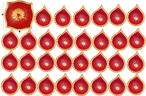 Terracota traditional diyas are perfect decor item and ideal gift for Diwali. Let your world be illuminated by our vivacious collection of diyas decorated with Beautiful Colors & glitters. Make your festive celebrations little more traditional and colorful with Cultural Concepts Handpainted Terracotta Diyas. Light it the auspicious way by filling it with oil or ghee and placing a cotton string or place a tea-light inside. You can light this earthen Diya/tea-light holder in whichever way you find convenient. Each Diya has its own vibrant color with a white-accented border on its edge and white satin in the center which makes them stand out when used individually or together. These diyas are red and have the sacred satia impression in the deep center which makes them easy to carry and stand out when used individually or together.