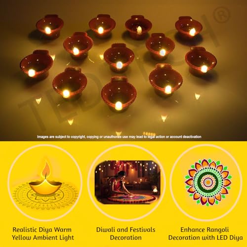 HomeHomeSpiritualEco-Friendly DiyaTed Tech Set Of 12, Tedtech Water Sensor Led Diyas Candle With Water Sensing Technology E-Diya, Warm Orange Ambient Lights, Battery Operated Led Candles For Home Decor, Festivals Decoration - Plastic