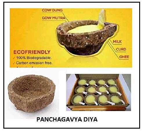 • made entirely of cow dung gow Mutra milk curd and ghee. Gives a feeling of positivity when burnt It comes filled with ghee and a wick Ready to use. It is 100 percent natural and bio degradable.