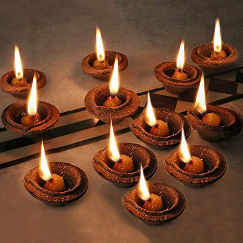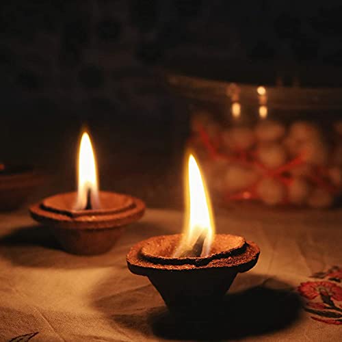 HomeHomeSpiritualEco-Friendly DiyaTIED RIBBONS Pack of 12 Diya Set - Handmade Cow Dung Diyas for Pooja Havan Panchagavya Gobar Diya Oil Lamp Traditional Pure Deepak - Decoration Items for Home Decor (Set of 12)