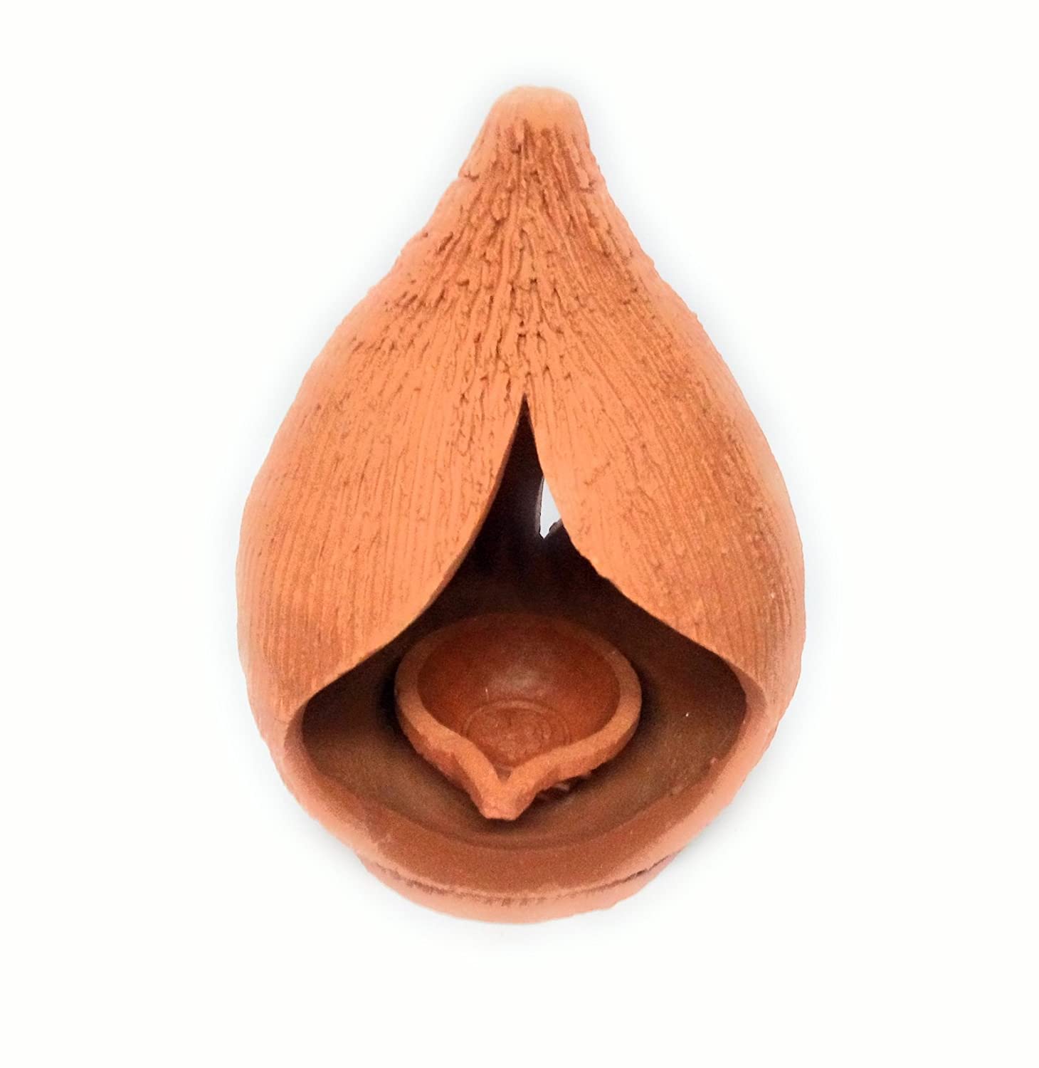 Tillage-Terracotta Clay Oil lamp Decorative Diya with lid for Home Decoration & Puja (Coconut LAMP) Pack of 2
