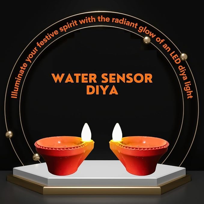 Introducing the Viraaji Water Sensor Electric LED Light Diyas - Your Perfect Diwali and Festival Lighting Solution! Illuminate your home with the enchanting glow of these Water Sensor Electric LED Light Diyas designed for a smokeless and flameless experience. Whether it's Diwali Navratri or any festive occasion these decorative Diyas add a touch of tradition and elegance to your decor. They are also the ideal choice for creating a warm and welcoming ambiance for New Year celebrations. Material: High-quality durable materials Dimensions: 6cm X 3cm Power Source: Battery-powered (batteries included)