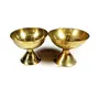WOOD CARVING WORK beautiful traditionally designed rounded detachable BRASS AKHAND DIYA/ pyali deep (oil/ ghee lamp) for puja decor and gifting purposes (2.5 inches in diameter and 2 inches in height; two pieces together weigh around 80 grams) Set of two pieces