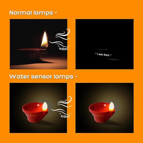 WORLD7® Water Sensor LED Diya Candle with Water Sensing Technology Magic-Diya, Warm Orange Ambient Lights, Battery Operated (6-Diya)
