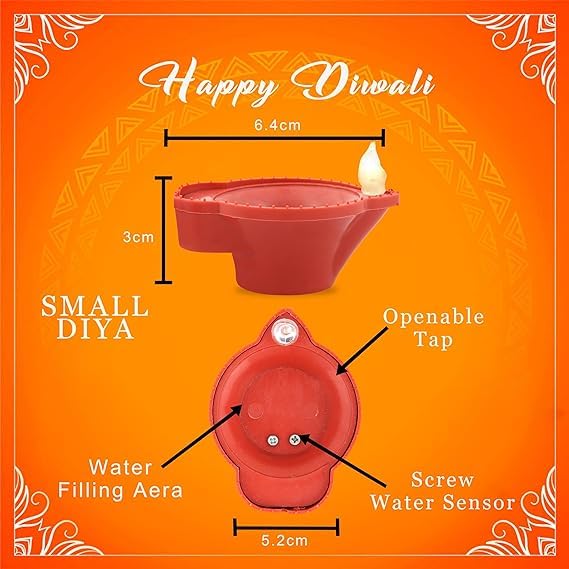 ZELXI Water Sensor LED Diya with Water Sensor Technology for Diwali Decoration, Attractive Design, Replaceable Battery, Decorative Items for Home (Set of 6) (12)
