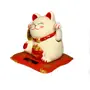 Maneki Neko Lucky Cat Waving Arm For Fortune Money And Good Luck On Top A Gold Bar with Swinging Arm Gold Solar Operated. Maneki Neko is also very popular in China and Thailand and is situated either in the entrance or in the center of the apartment. There she brings the owner happiness contentment and a healthy life or money and riches. While placing Waving Cat in stores the customers are attracted by the raised paw and so bring money. This golden cat will bring health wealth and wisdom when placed strategically around the home the shop or the office. It has been bringing good luck to the Chinese for thousands of years. Invite good luck into your home. Place it near the cash register and hear it ring again and again. Place it in the hall facing out or in the hall way. The solar waving left hand is said to attract more active wealth. In China it is called lucky cat or prosperity cat. ItÂÂs golden in color and is about 7cm tall. The gesture of good luck cat plays an important role: the raised left paw brings happiness and satisfaction the right paw money and wealth.
