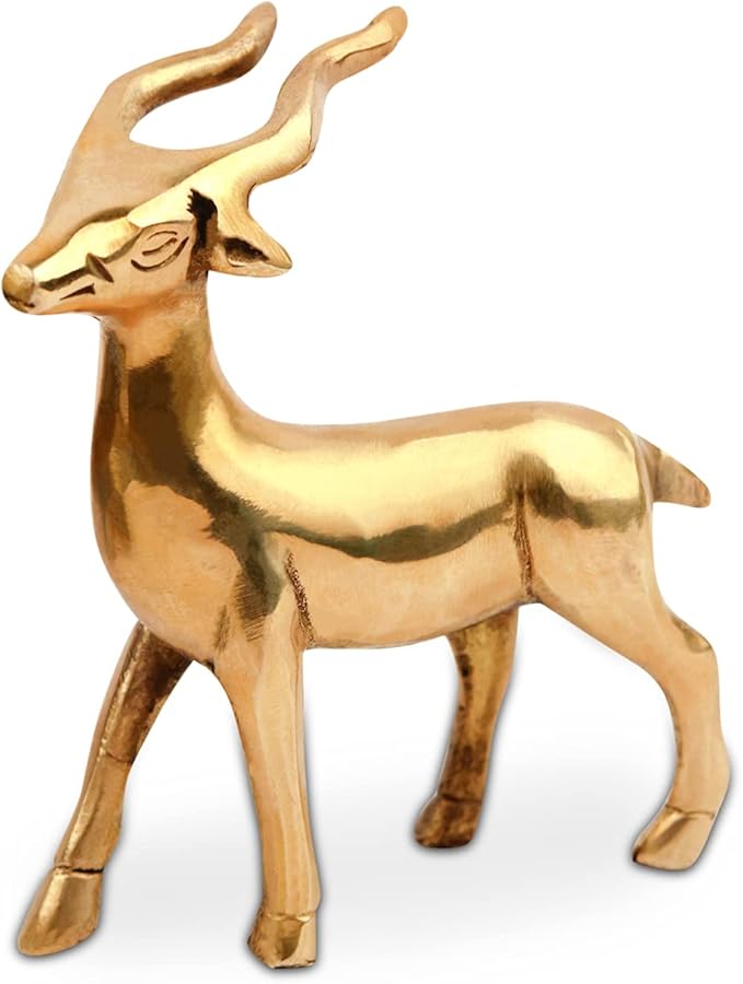 TREEMAISON Small Deer Statue | Designer Deer | Vastu Brass Showpeice | Home & Office Decor | Vastu Shastra & Feng Shui Remedies | Size - 3.5 Inch Approx.