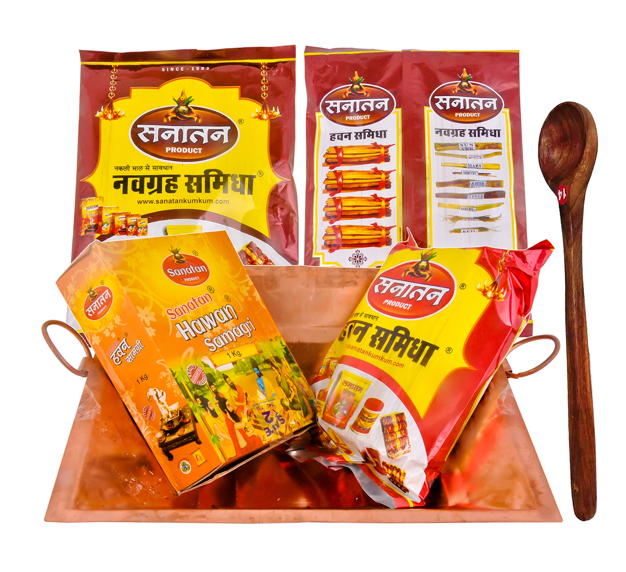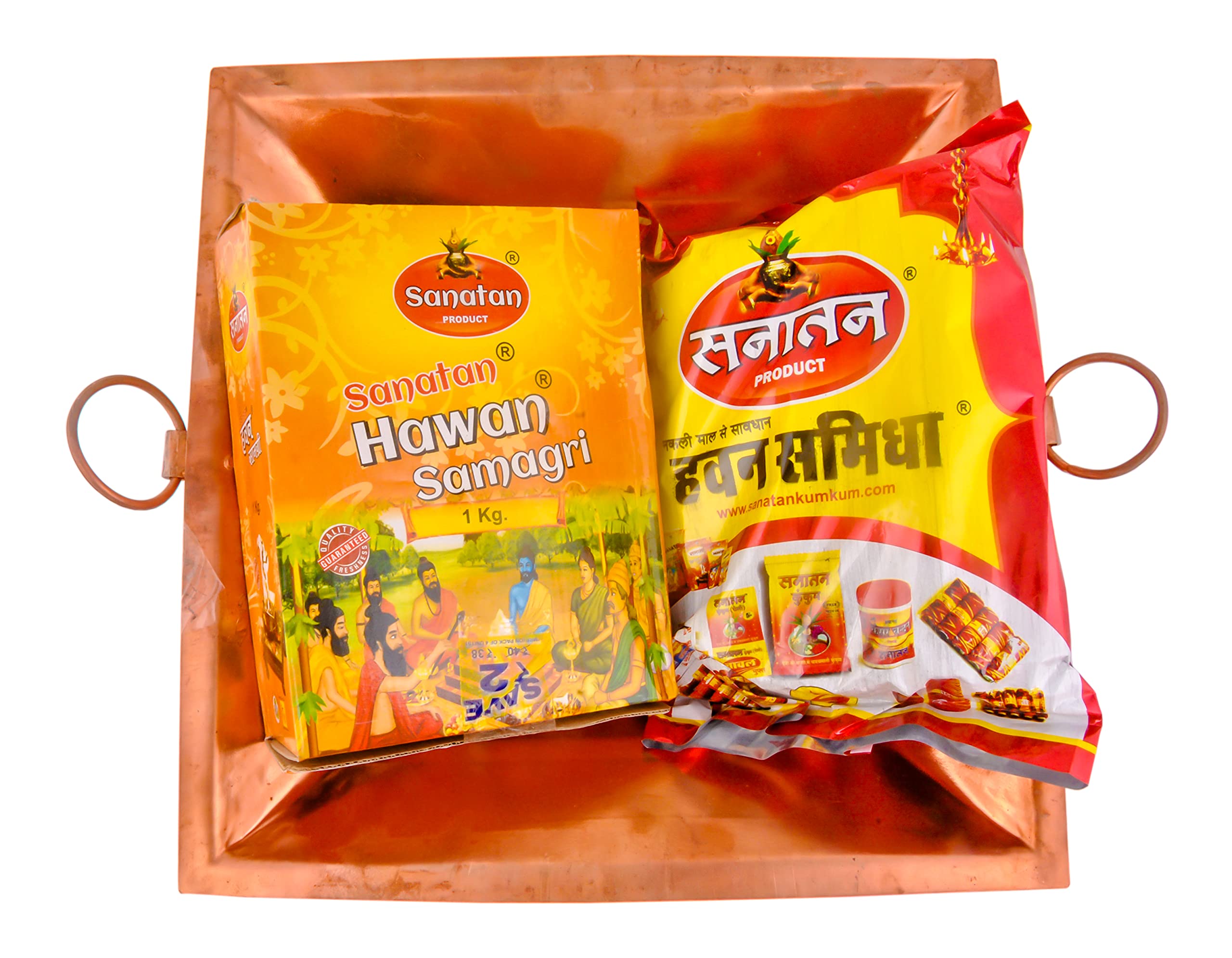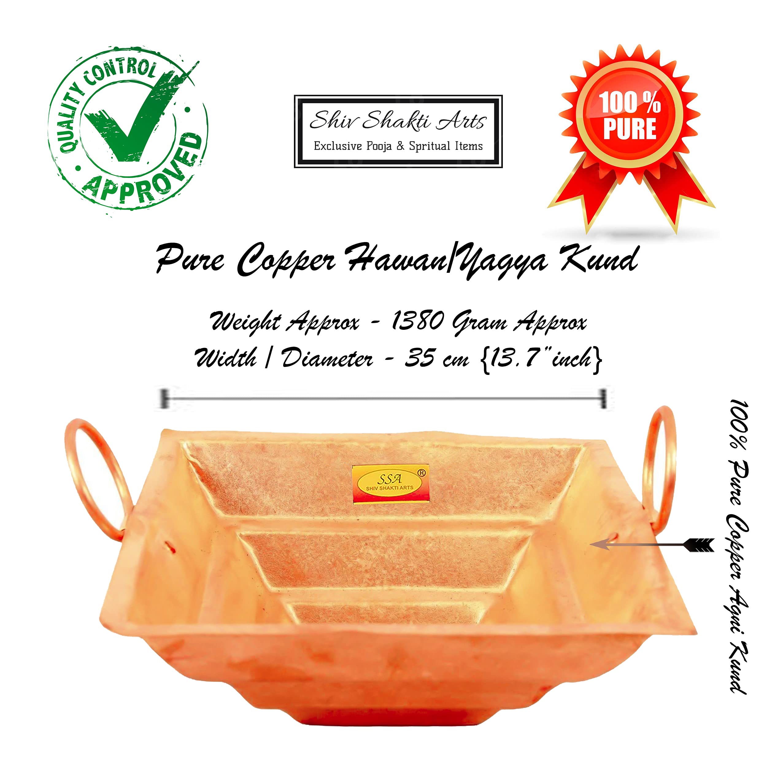 Shiv Shakti Arts Pure Copper Hawan Kund | Yagya Kund with Hawan Samagri & Navgrah Samidha (Lakdi) & Mango Wood - Big - 13.7" Inch for Home & Mandir Pooja