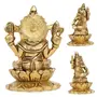 10Club Lord Ganesha Idol - 1 Pc (3.5 inches 500 Grams) - 100% Pure Brass | Ganesha Sitting on a Lotus | For Desk Car Home Decor and Gifting | Yellow Antique Finish | Ganesha Idols for Diwali Gifts