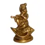 Decorate your interiors in an interesting manner with this classy showpiece featuring the figurine of lord krishna. Apart from being worshipped this amazing showpiece can be placed in your living room or in your office. The statue is made up of brass adorned in an antique gold finish with a protective coating over it.