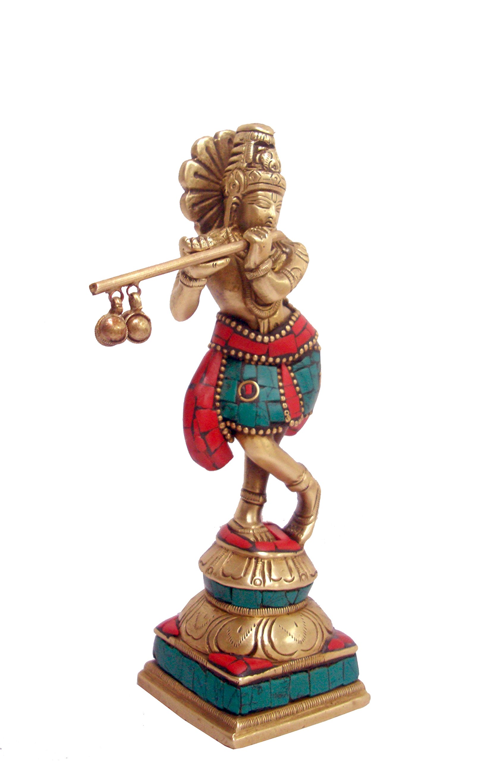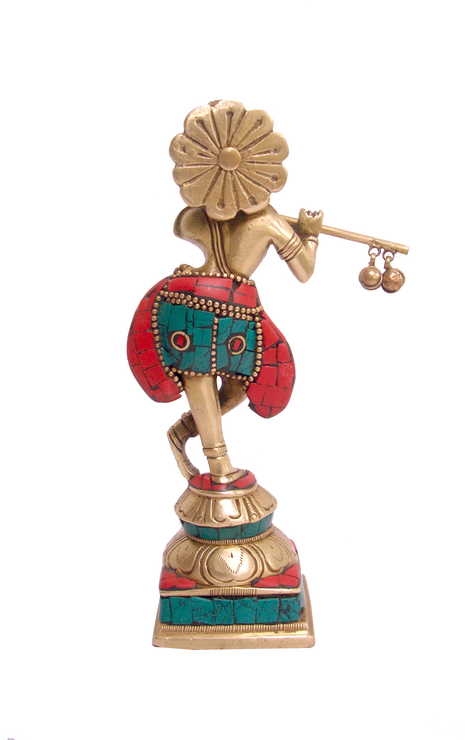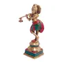 Decorate your interiors in an interesting manner with this classy showpiece featuring the figurine of lord krishna. Apart from being worshipped this amazing showpiece can be placed in your living room or in your office. The statue is made up of brass adorned in stone finish with a protective coating over it