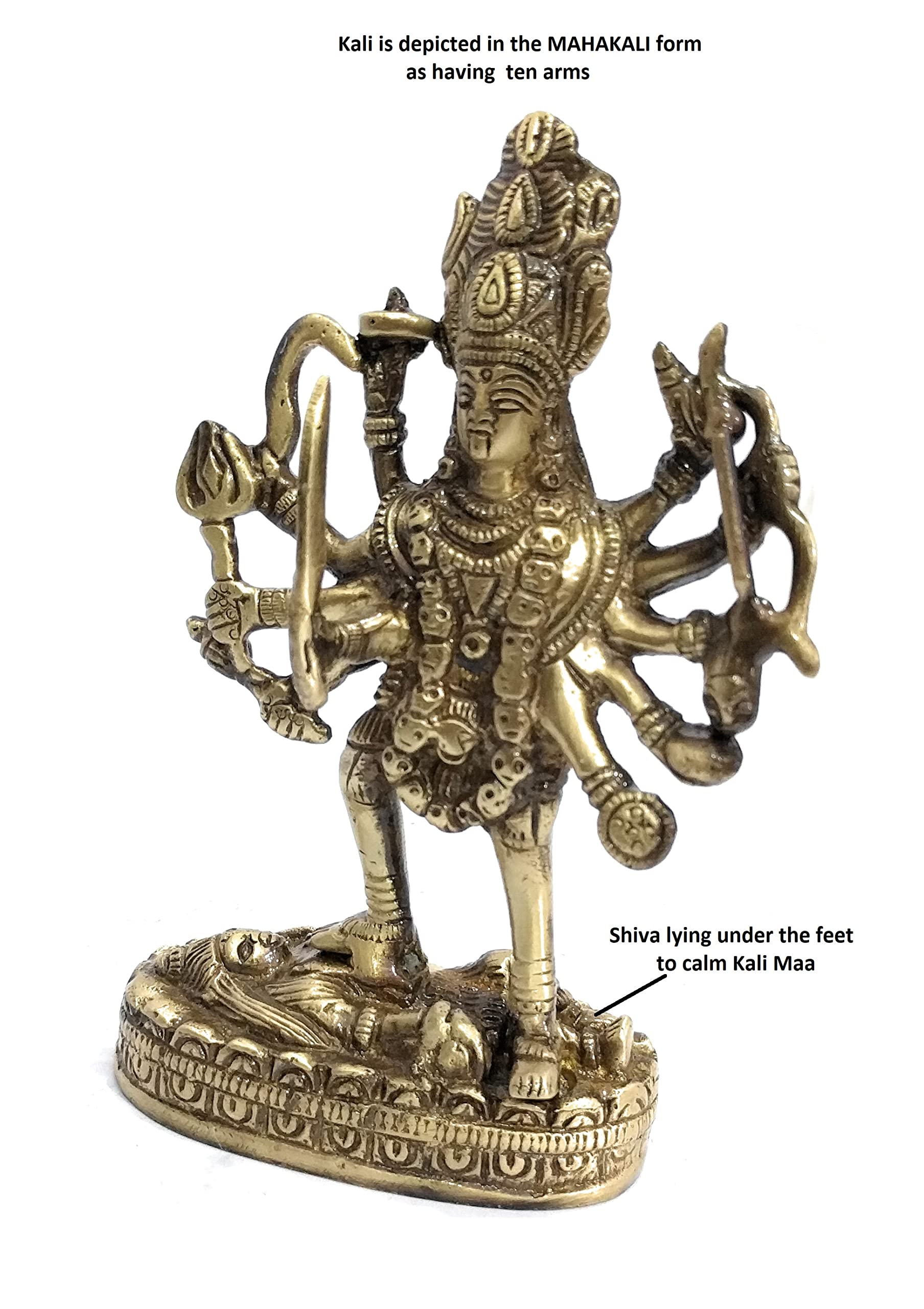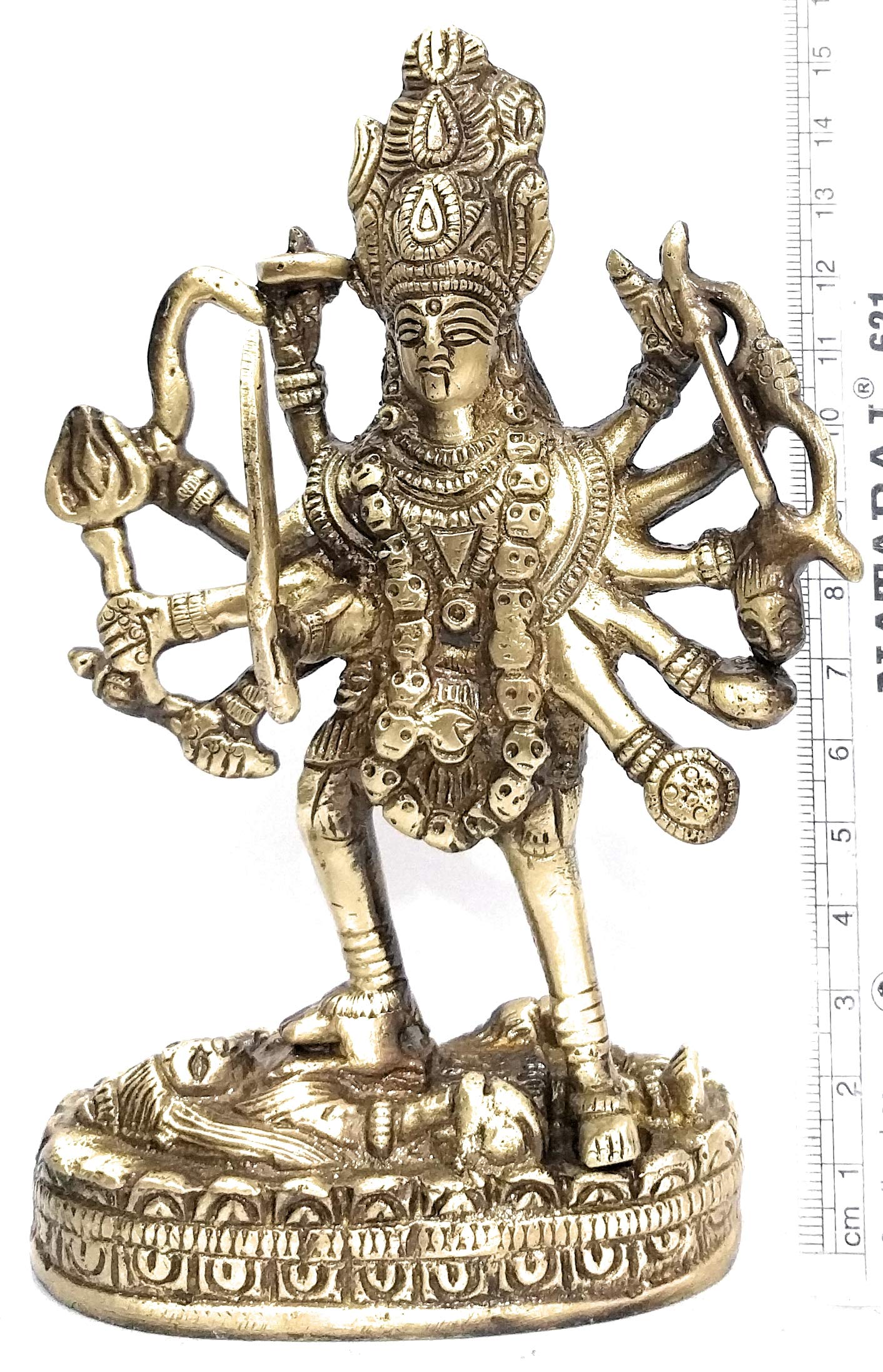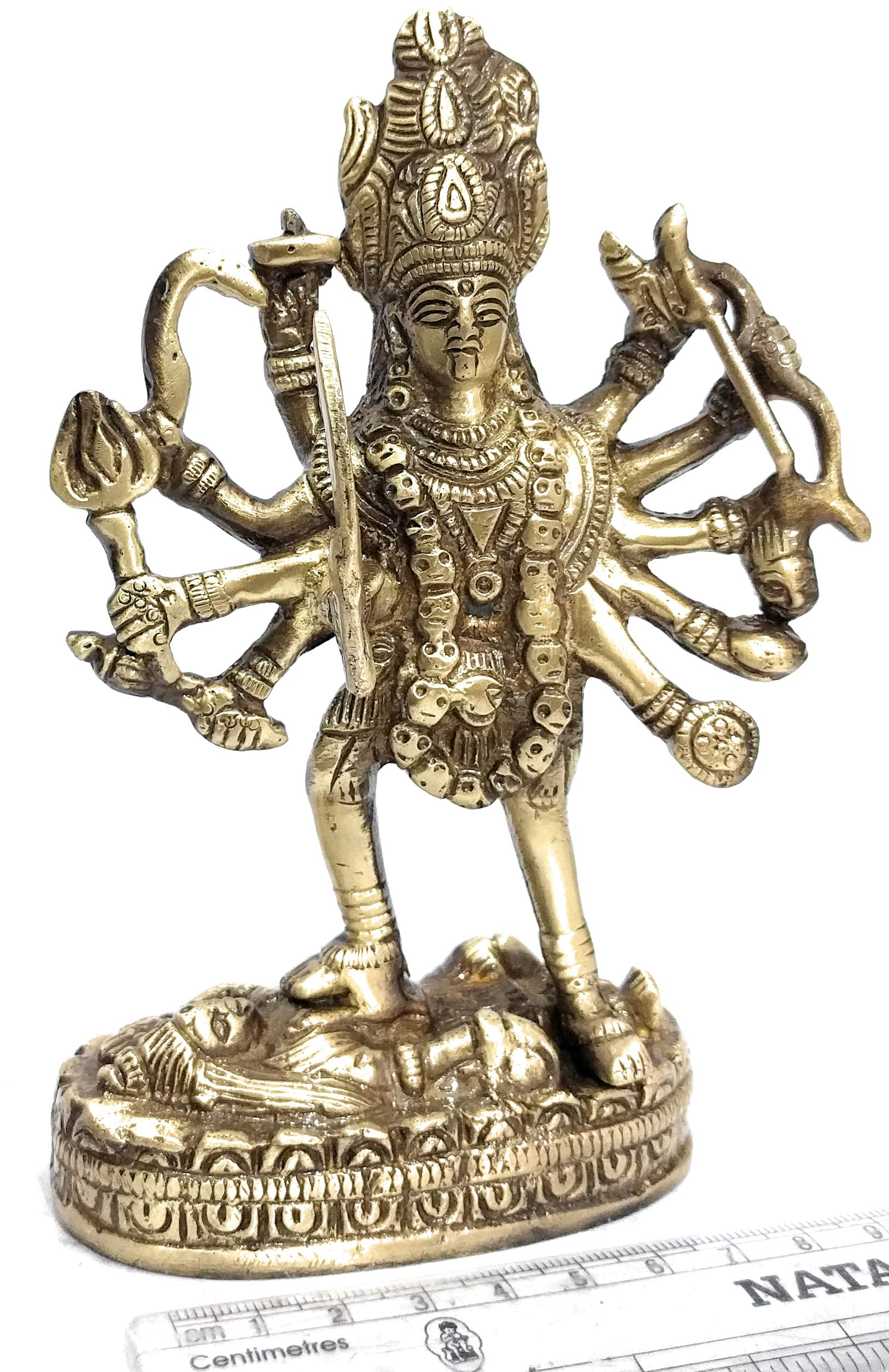 HomeHomeSpiritualIdolsathizay Kali MATA Statue Brass with Lacquer Finish for Durga Puja Mahakali with 10 Hands. Decorative Showpiece - 15 cm (Brass) || Kali MATA murti