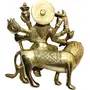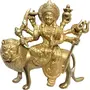 • 16 cm tall Brass sherawali mata Idol with gold texture and finish. Goddess Durga symbolizes the divine forces (positive energy) known as divine shakti (feminine energy/ power) that is used against the negative forces of evil and wickedness. She protects h
