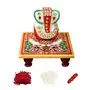 BENAVJI Marble Chowki with Ganesha Idol Hand Painted Ganesh Marble Base Home Decor Traditional Decorative Gift Pooja Wedding Showpiece with Roli Moli