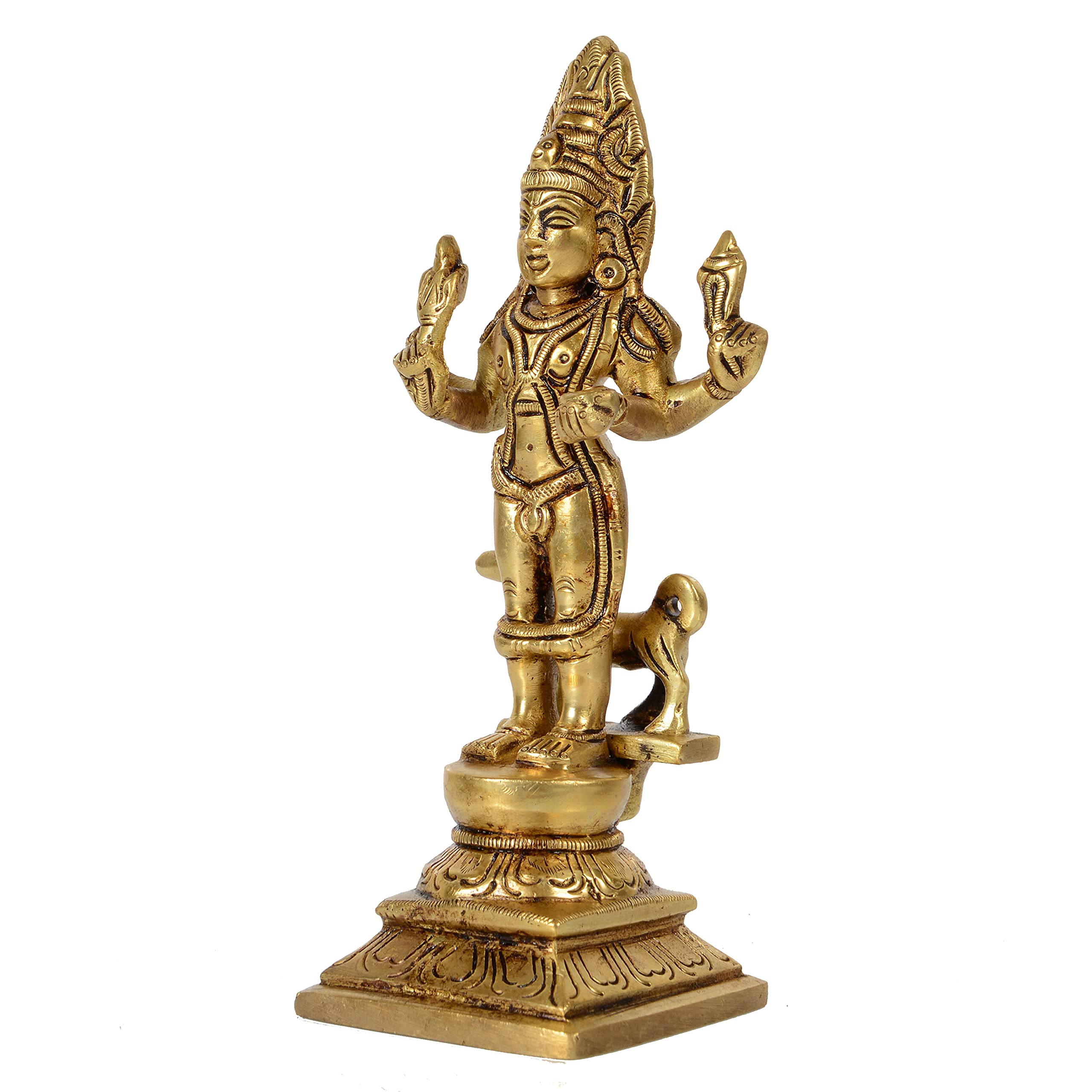 Bharat Haat Brass Kalbhairav God Idol Lord Shiva Form for Home Office Temple Mandir Pooja Puja Room Handicraft Medium Art ( 2.5 x 2.2 x 6 Inch (L x W x H) Yellow) Bharat Haat has been in the industry for two decades now. We are a manufacturer of Brass decorative products and export our products to other countries as well. We design develop and manufacture solid brass products such as Murti Idol Diya home decor Pooja products living room and art decor products. Our quality is what we are known for. We do not compromise our product quality. We have an in-house team who manages all our design aspects and work closely with the current trend. Net Weight: 580g