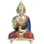BUDDHA TIBETAN RELIGIOUS GOODS God Idol Gautam Buddha Brass Statue Sitting Blessing Position Draped in Stone Embellished Shawl H - 6 inch