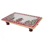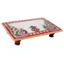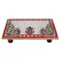 HomeHomeSpiritualIdolsCHURU SANDALWOOD CARVED Marble Puja Chowki Set of 2 Hand-Painted Kalash Peacock Art Design Small Marble Puja Chowki for God Idols Puja Mandir Bajot and Decorations :- 6x4 inch