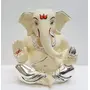 CHURU SILVERWARE Ceramic Ganesha Car Dashboard Idol 2 Inches Silver and Chandan