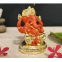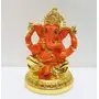 Size: Height 3 Inches x Width 2 Inches | Weight: 95 Grams | Material: Polyresin Gold Plated with orange Terracotta hand painted Package Contents: 1. Gold Plated Ganesha Idol