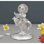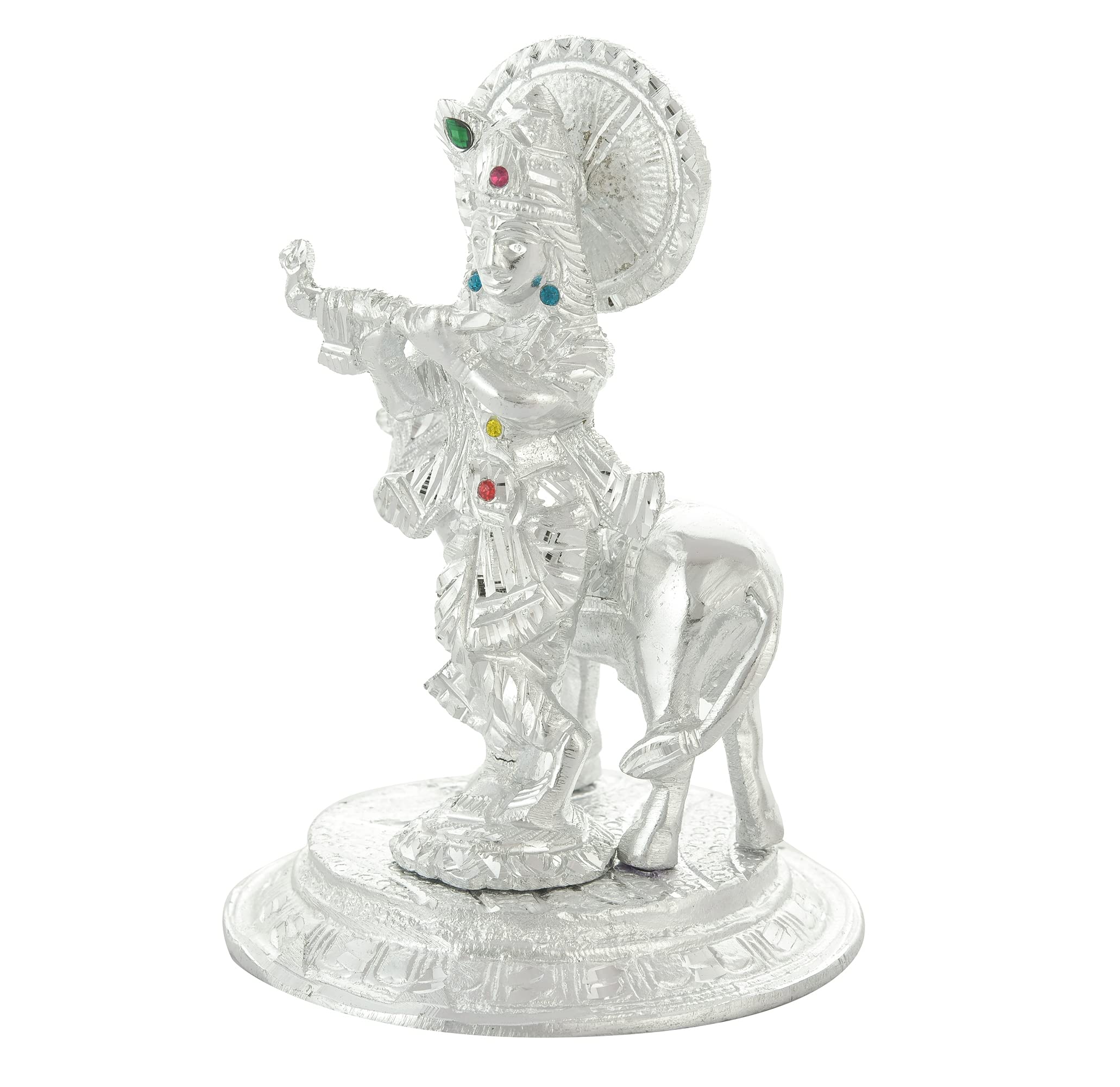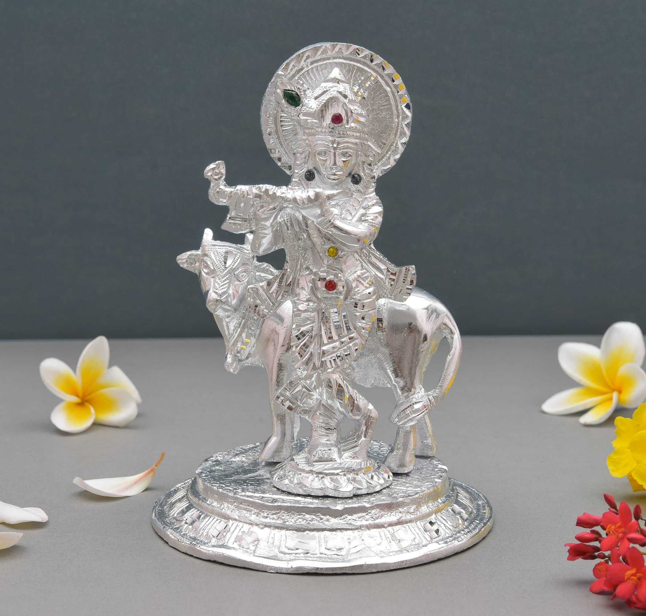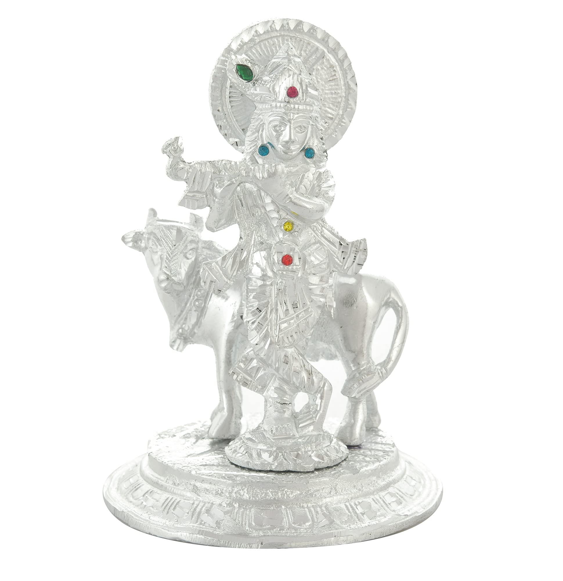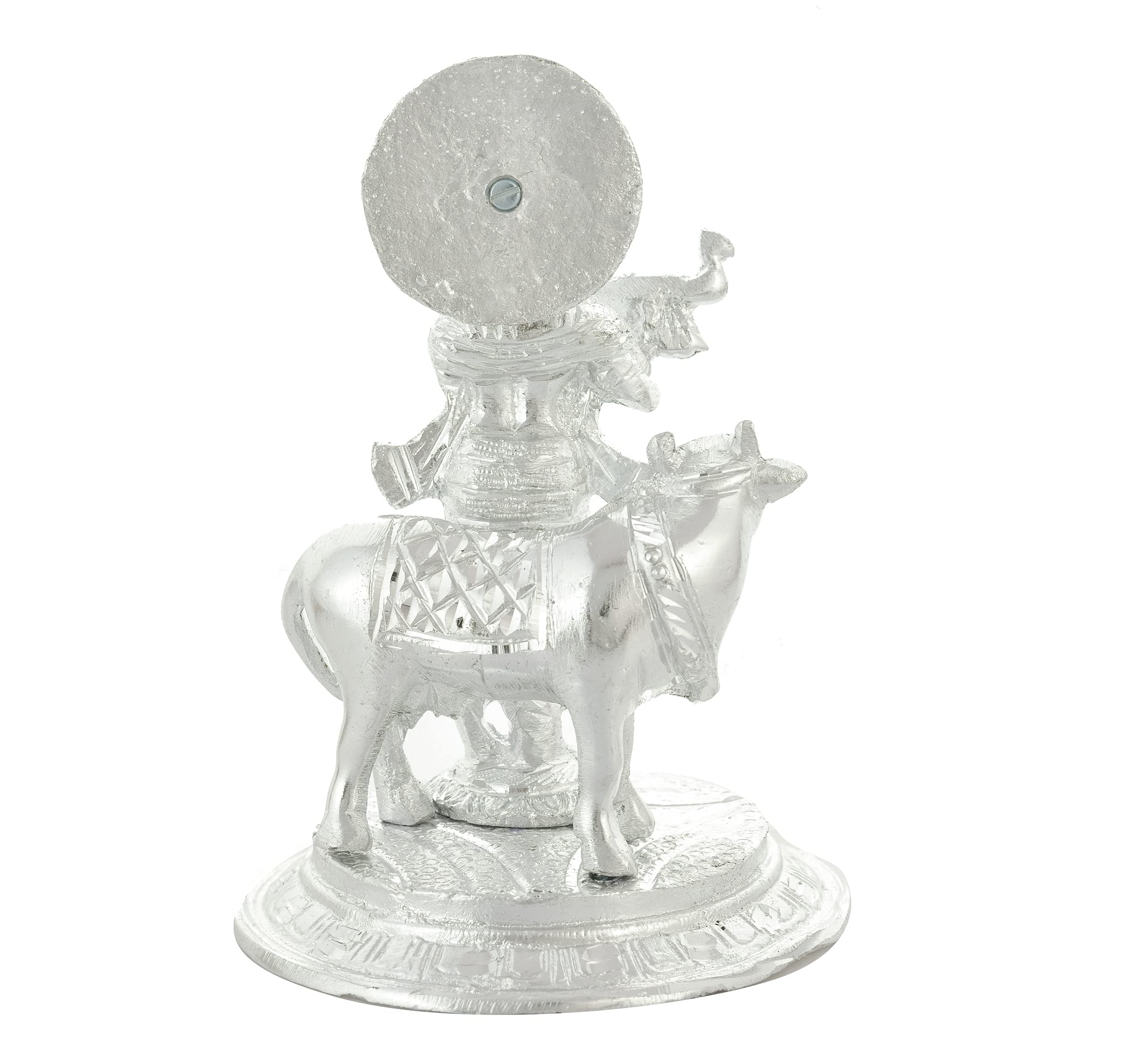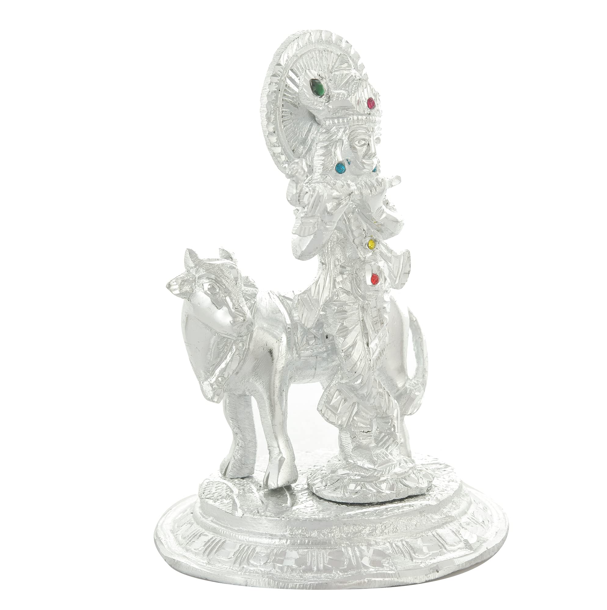 CHURU SILVERWARE Handicraft Metal Krishna with Cow Idol for Home Decor & Temple Krishan Ji Murti with Kamdhenu Cow