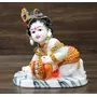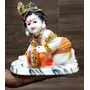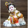 From the House of eSplanade - Baby Krishna Idol / Statue eating Makhan / Butter. Hand Carved Bal Krishna Resin Idol Sculpture Statue. Size 7.5 inches x 7.5 inches. A beautifully carved Krishna in his baby avatar. This avatar of Lord Krishna is also popularly called as the Makhan Chor and is one of the most adored and loved versions. This figure of the Lord brings immense joy and happiness to people. Use it at a place of worship or simply use as a home decor.