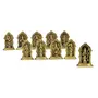 Dashavatara refers to the ten primary avatars of Vishnu the Hindu god of preservation.Description of the avatars:1- Matsya the fish. Vishnu takes the form of a fish to save Manu from the delugeafter which he takes his boat to the new world along with one of every species of plant and animal gathered in a massive cyclone.2- Kurma the giant tortoise. When the devas and asuras were churning the Ocean of milk in order to get Amrita the nectar of immortality the mount Mandara they were using as the churning staff started to sink and Vishnu took the form of a tortoise to bear the weight of the mountain.3- Varaha the boar. He appeared to defeat Hiranyaksha a demon who had taken the Earth or Prithvi and carried it to the bottom of what is described as the cosmic ocean in the story. 4- Narasimha the half-man/half-lion. The rakshasa Hiranyakashipu the elder brother of Hiranyaksha was granted a powerful boon from Brahma that he could not be killed by man or animal inside or outside a room during day or night neither on ground nor in air with a weapon that is either living or inanimate. 5- Vamana the dwarf. The fourth descendant of Vishnu Bali with devotion and penance was able to defeat Indra the god of firmament.6 - Parashurama the warrior with the axe. He is son of Jamadagni and Renuka and received an axe after a penance to Shiva.7- Rama the prince and king of Ayodhya. He is a commonly worshipped avatar in Hinduism and is thought of as the ideal heroic man.8- Balarama the elder brother of Krishna is regarded generally as an avatar of Shesha.9- Krishna was the eighth son of Devaki and Vasudeva. 10 - Kalki is described as the final incarnation of Vishnu who appears at the end of each Kali Yuga.Brass super fine finishing of vishnu dashavtar fopr home/office/temple decor as well as gifting purpose by Stonkraft.