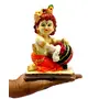 From the House of eSplanade - Baby Krishna Idol / Statue eating Makhan / Butter. Hand-carved Baby Krishna Resin Idol Sculpture Statue - Size 8 x 5 inches. A beautifully carved Krishna in his baby avatar. This avatar of Lord Krishna is also popularly known as the Makhan Chor and is one of the most adored and loved versions. This figure of the Lord brings immense joy and happiness to people. Use it at a place of worship or simply use as a home decor.
