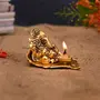 Collectible India Ganesh Idol on Leaf - Lord Ganesha with Diya - Metal Hand Craved for Home Decorative Gift Puja Gift