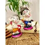 India Handcrafted Resine Little Ganesha Playing Dhoalk and Basuri Idol Sculpture | Showpiece for Home Dcor Gift Item for Table/Mandir Pooja/Home Decor - 15 cm (Set of 2)