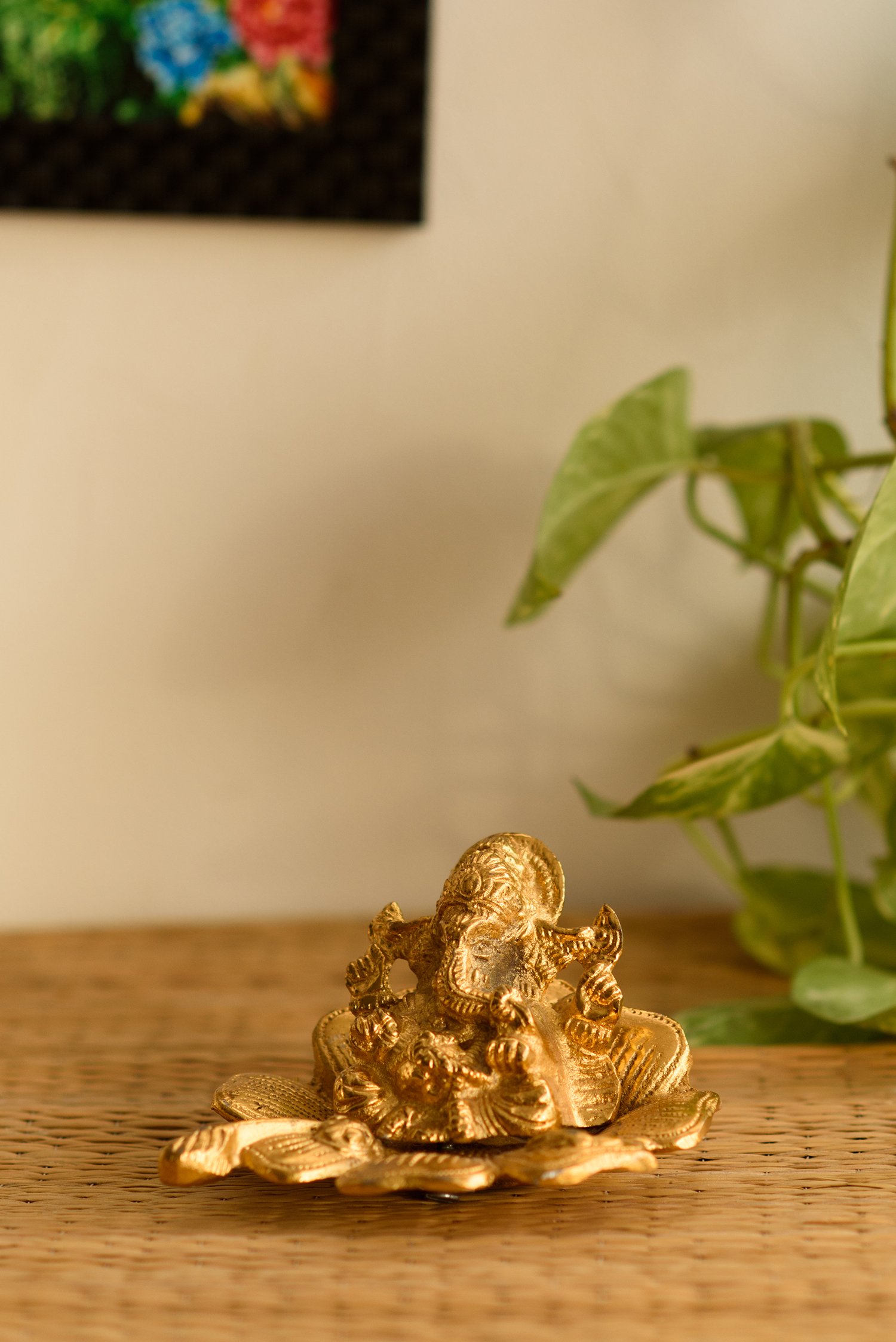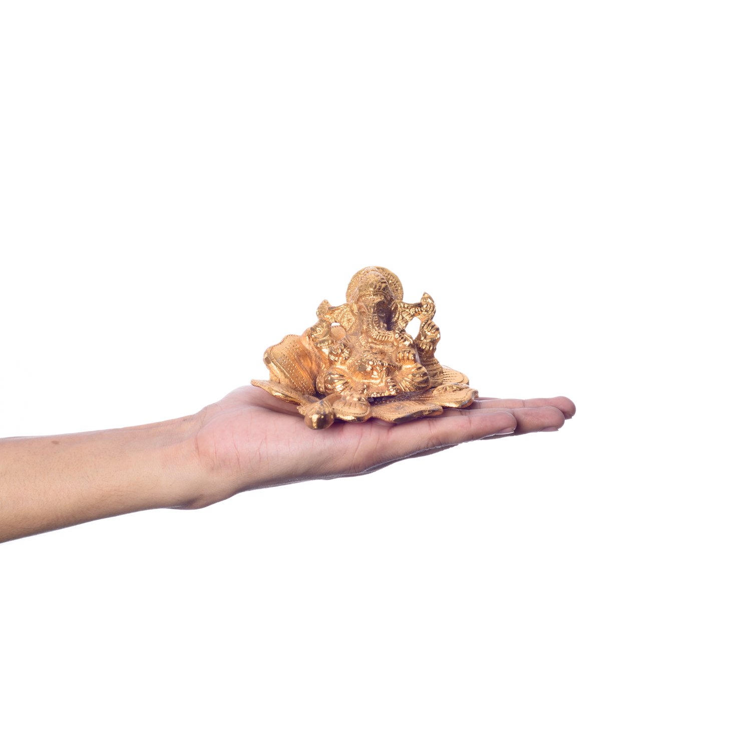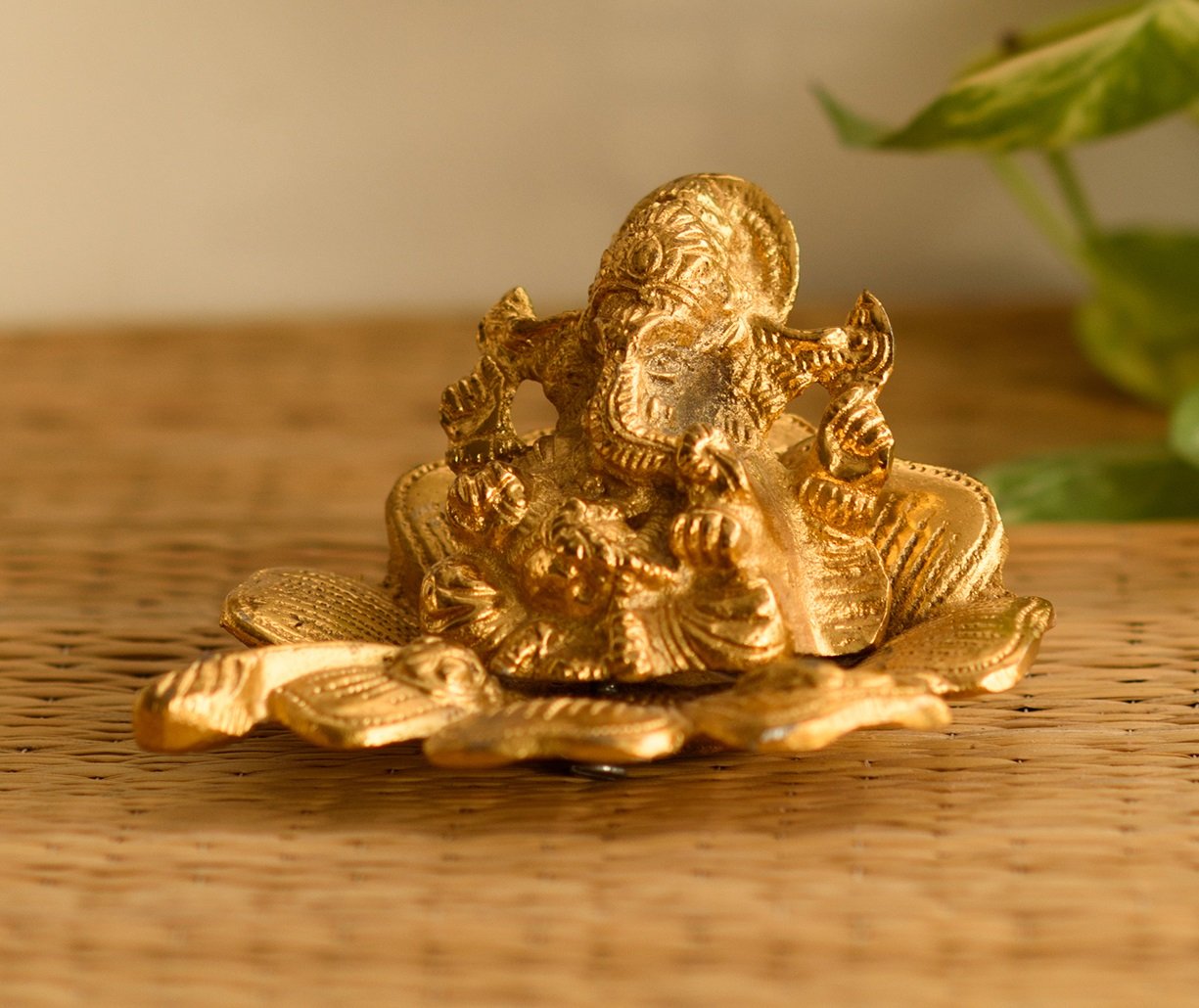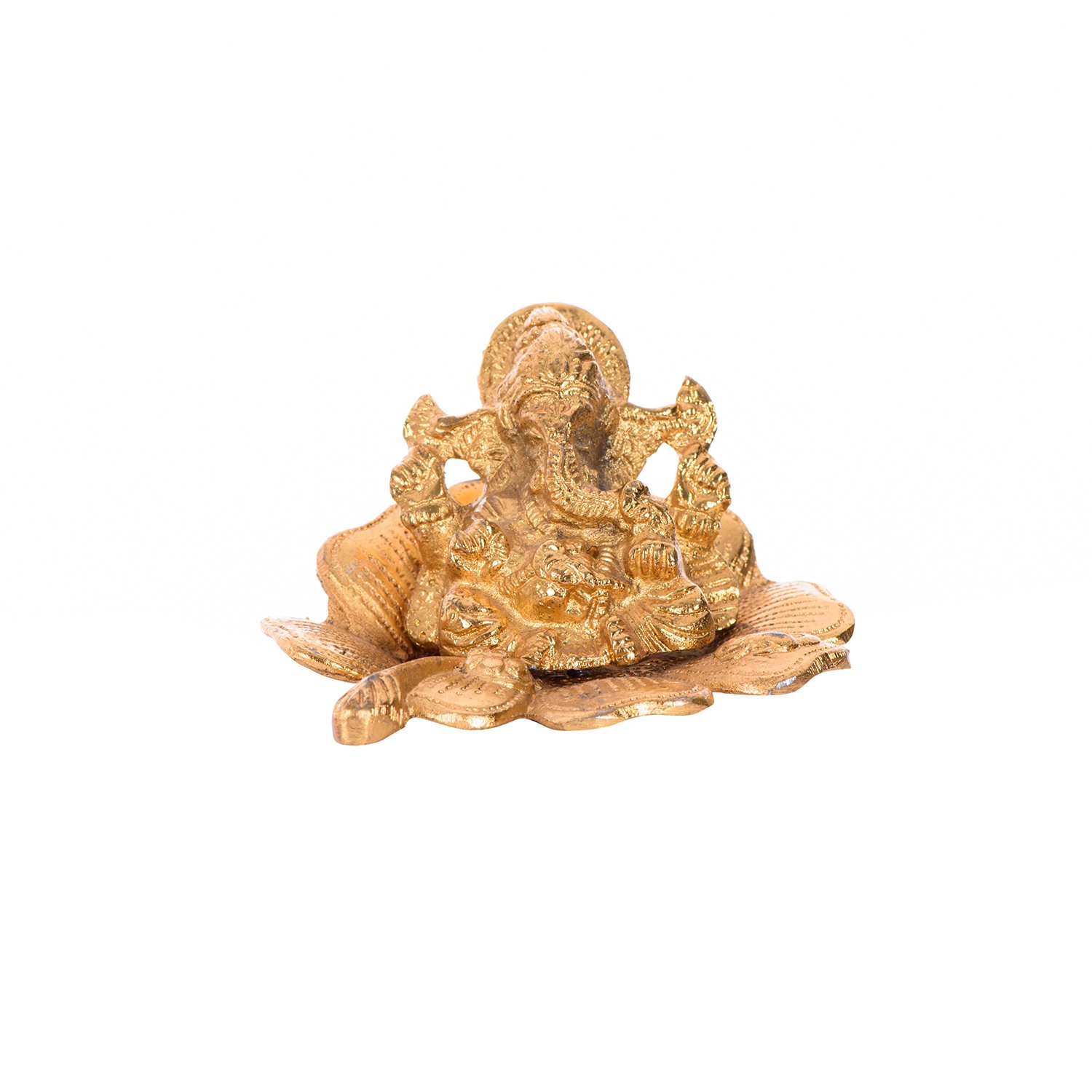 JAIPUR STONE WORK Golden Ganesha on Flower Showpiece - 7.62 cm (Aluminium Gold)
