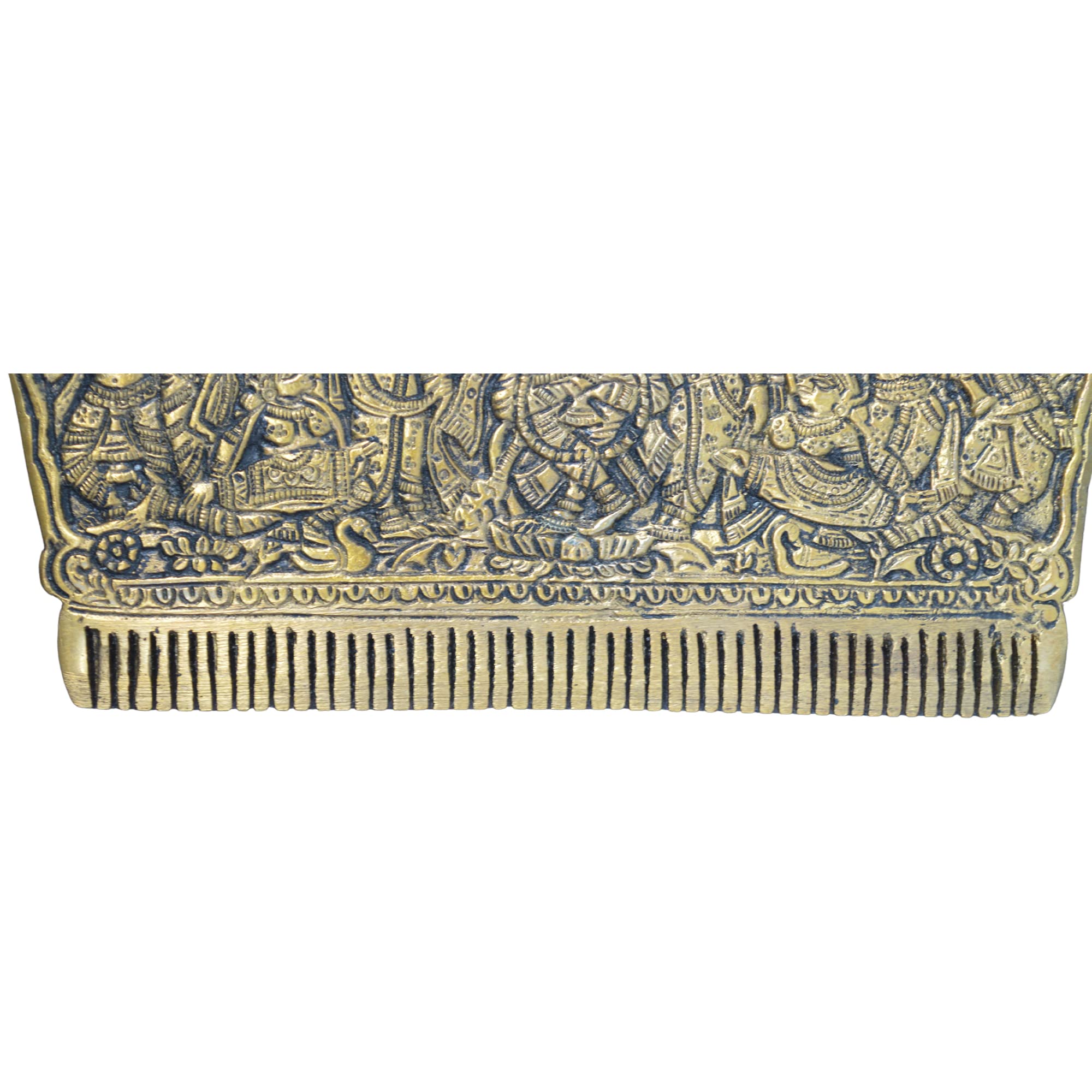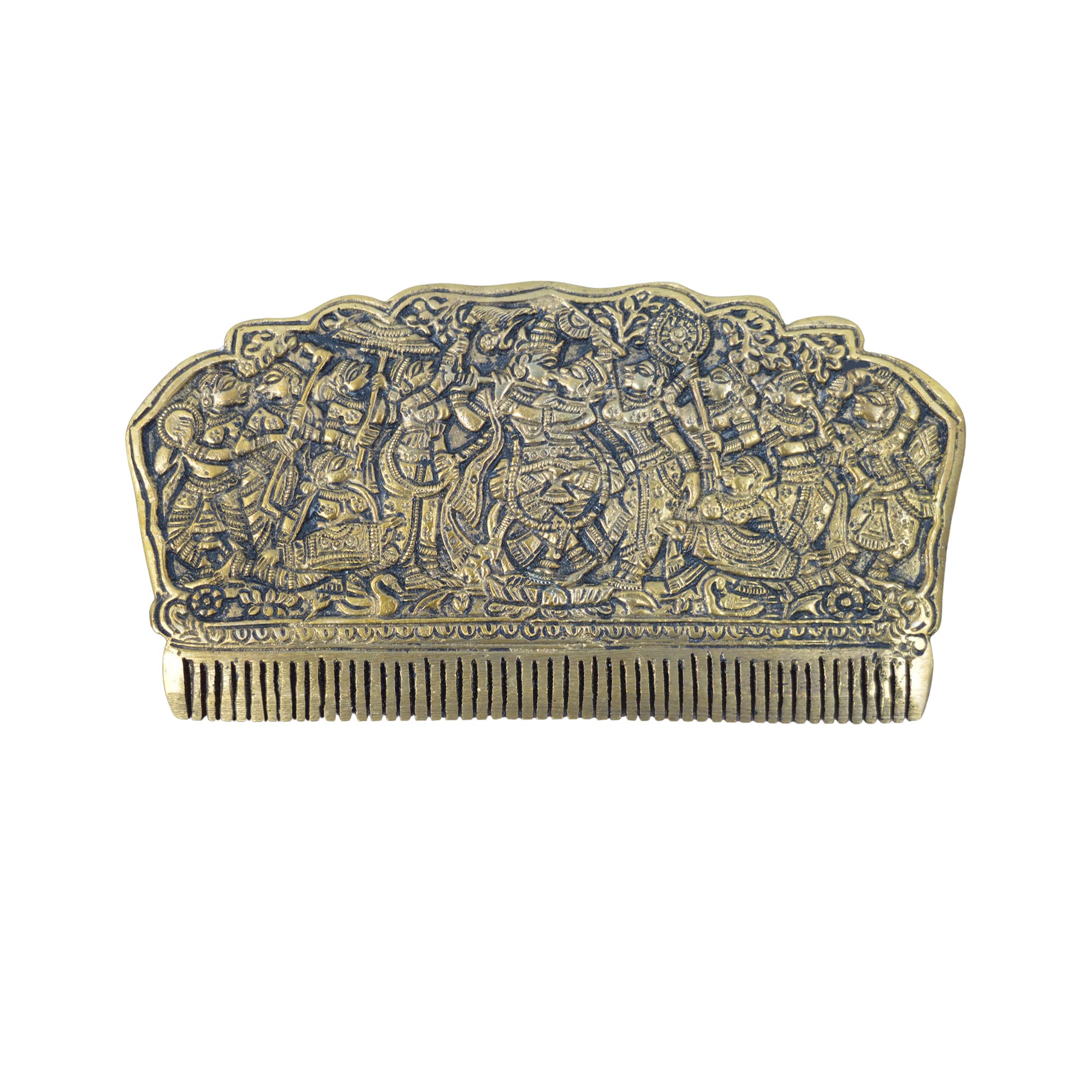 Kalarambh has been in the industry for two decades now. We are a manufacturer of Brass decorative products and export our products to other countries as well.We design develop and manufacture solid brass products such as home decor Pooja products living room and art decor products.Our quality is what we are known for. We do not compromise our product quality. We have an in-house team who manages all our design aspects and work closely with the current trend.Size: 16.256 x 0.254 x 8.128 cm (L x W x H); 6.4 x 0.1 x 3.2 Inch (L x W x H)Package Contain: 1 x Comb