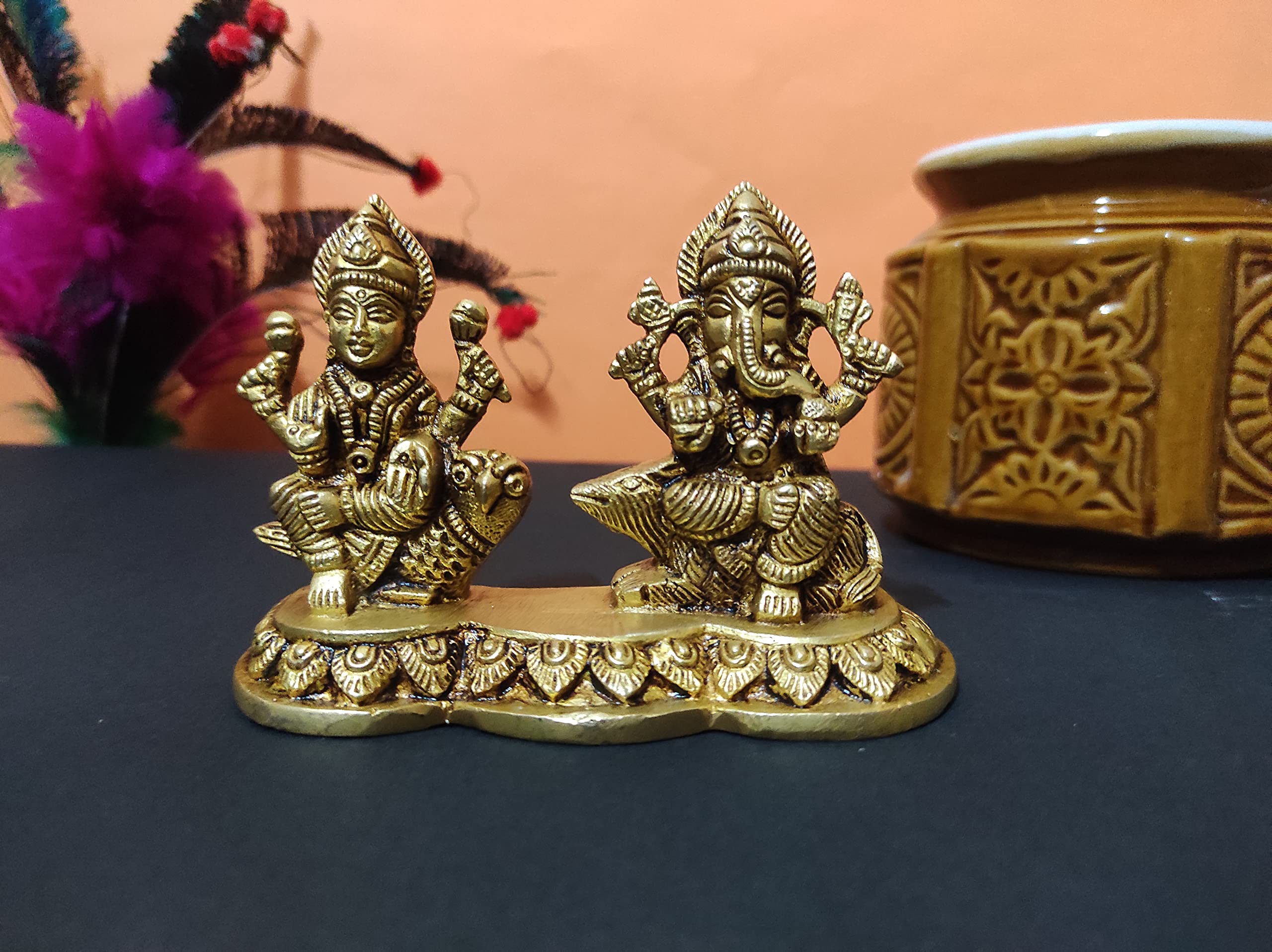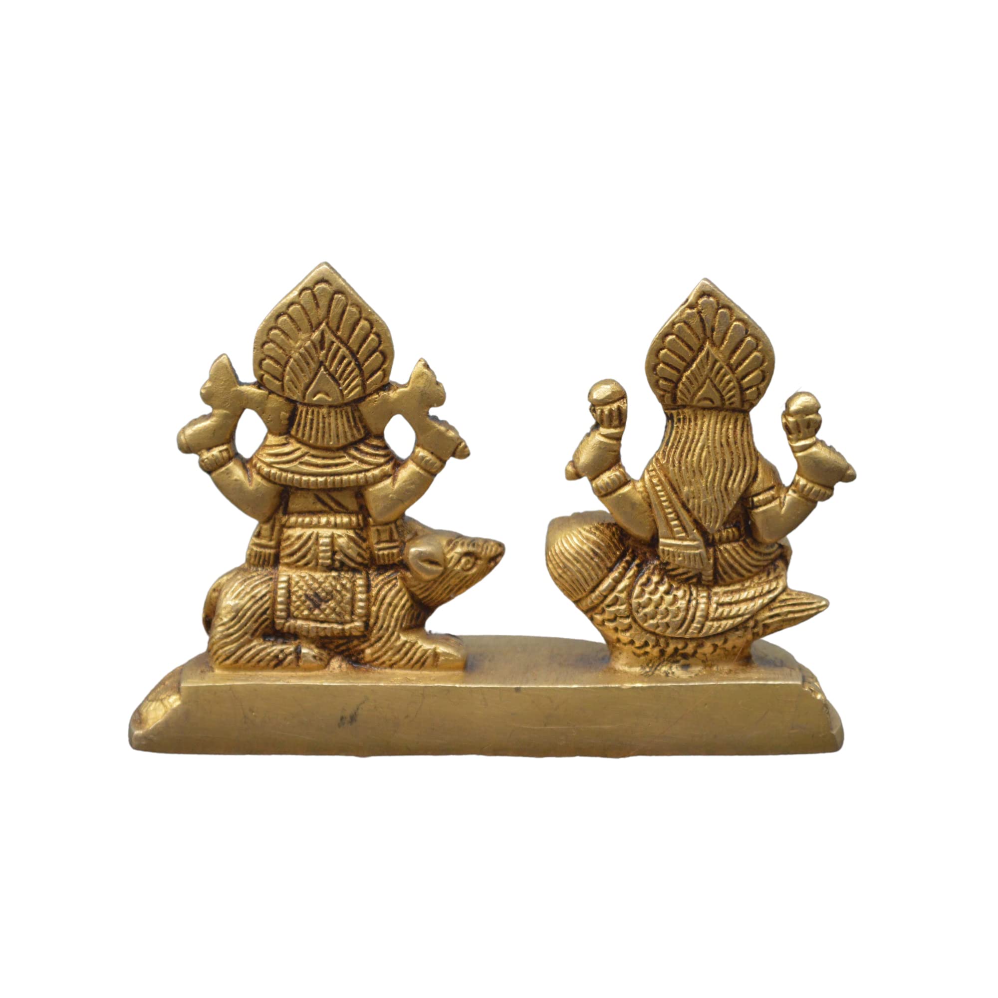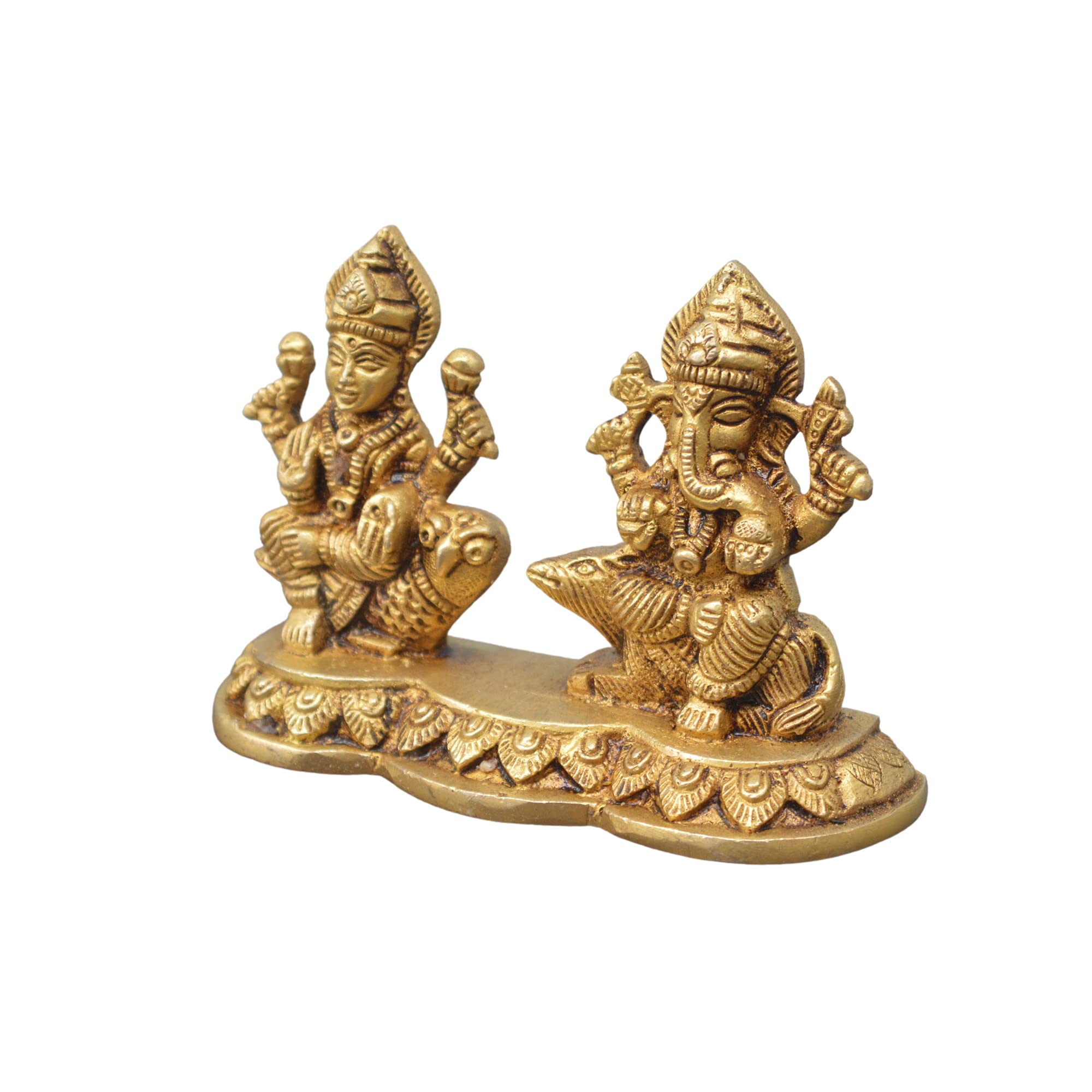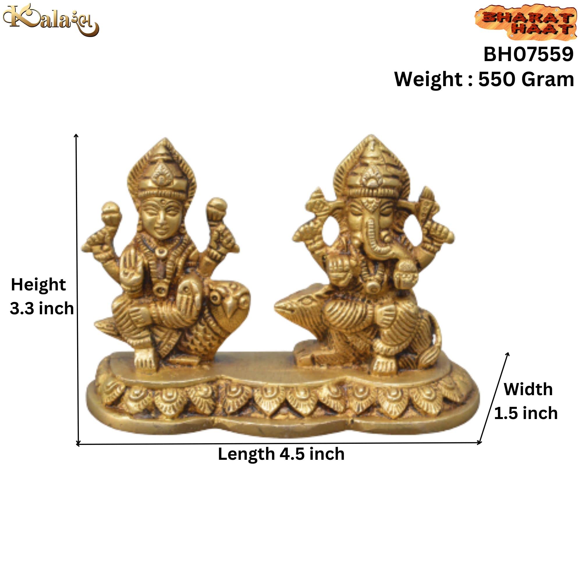 Kalarambh has been in the industry for two decades now. We are a manufacturer of Brass decorative products and export our products to other countries as well.We design develop and manufacture solid brass products such as home decor Pooja products living room and art decor products.Our quality is what we are known for. We do not compromise our product quality. We have an in-house team who manages all our design aspects and work closely with the current trend.Size: 11.43 x 3.81 x 8.382 cm (L x W x H); 4.5 x 1.5 x 3.3 Inch (L x W x H)Package Contain: 1 x Ganpati and Laxmi