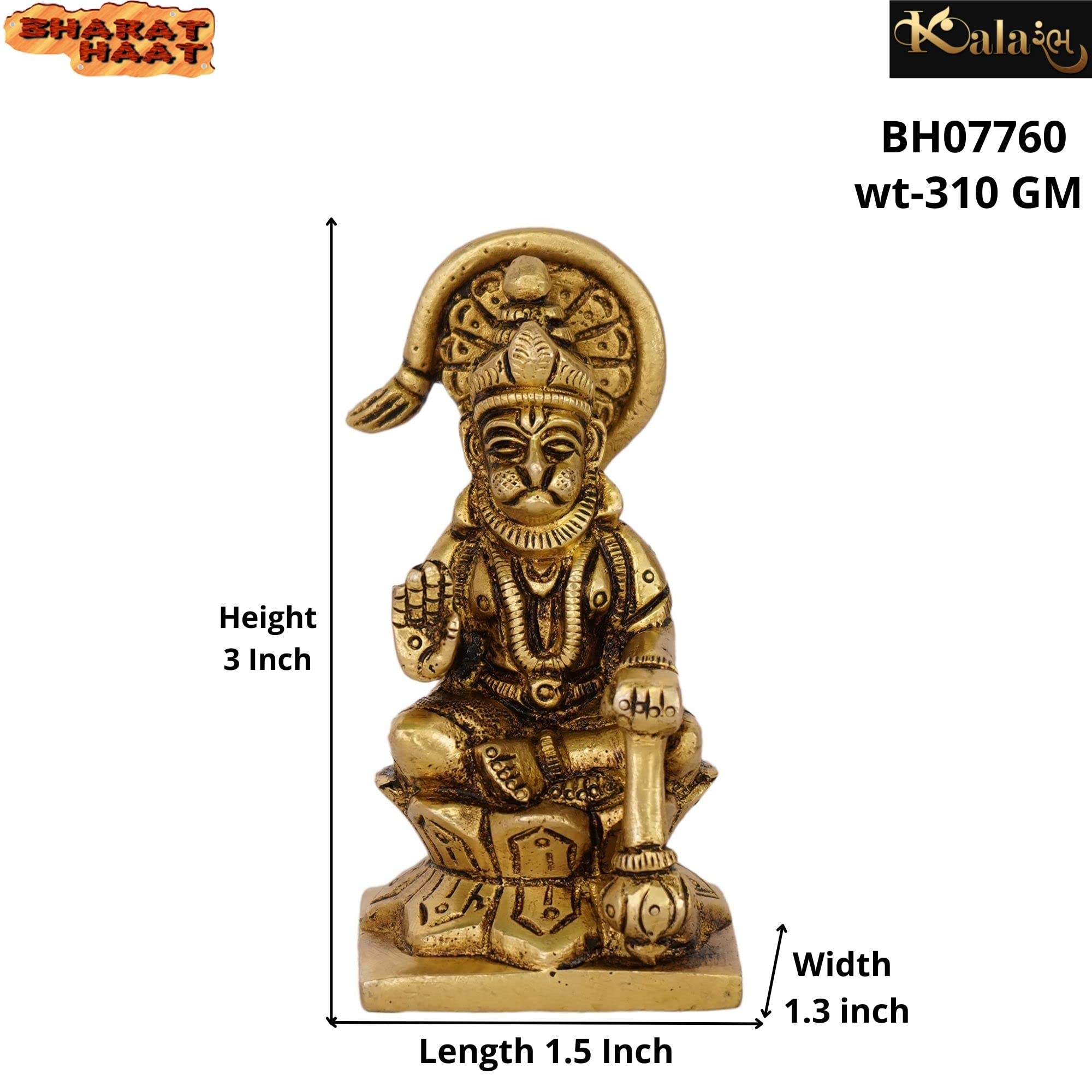 Kalarambh has been in the industry for two decades now. We are a manufacturer of Brass decorative products and export our products to other countries as well.We design develop and manufacture solid brass products such as home decor Pooja products living room and art decor products.Our quality is what we are known for. We do not compromise our product quality. We have an in-house team that manages all our design aspects and work closely with the current trend.Size: 1.5 x 1.3 x 3 inch (LxWxH); 3.81 x 3.302 x 7.62 Cm (LxWxH)Package Contain: 1 x Hanuman