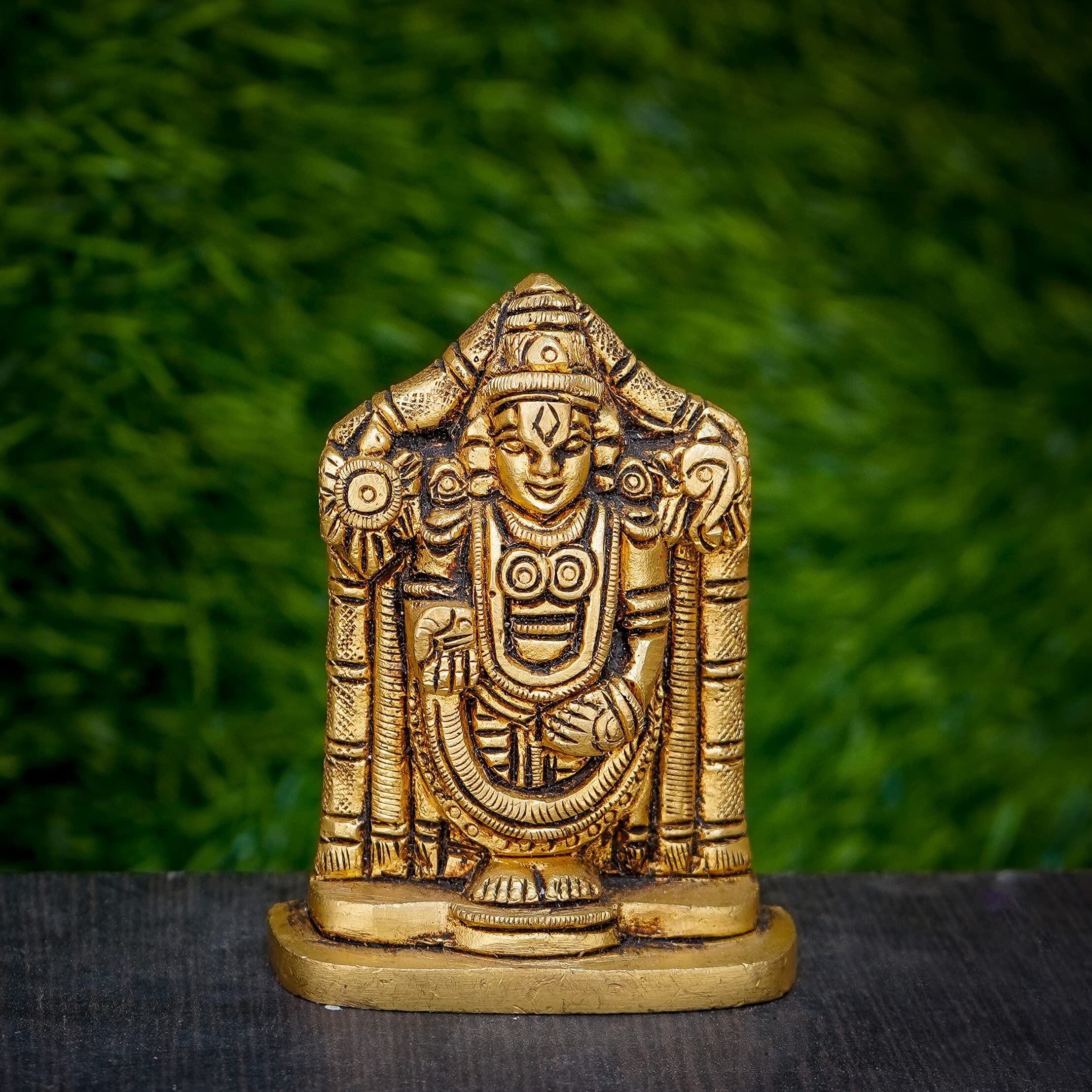 Kalarambh Brass Tirupati Balaji Idol Murti Statue for Home Office Pooja Puja Room Mandir Table Decor Gift Items Collectible Handicraft Art Yellow 2.3 x 0.4 x 3 Inch (L x W x H)