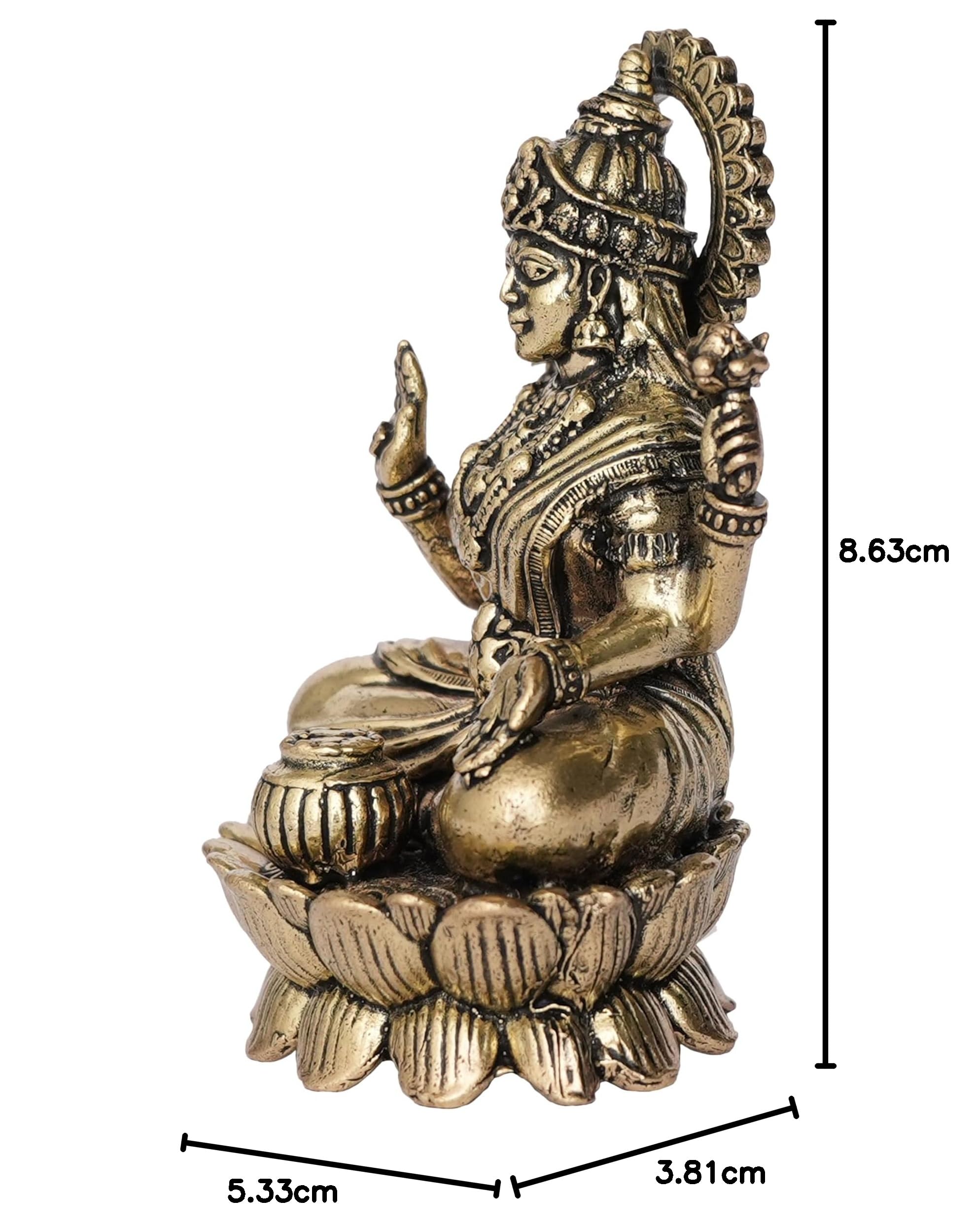 KALARAMBH Stylish Designer Brass Lakshmi ji Sitting on Kamal for Good Luck Vastu Fengshui Showpiece for Home Kitchen Decor (Golden Yellow)