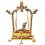 KridayKraft Laddu Gopal on Jhulla Palana Metal Statue Gold Plated Decor Your Home,Office metal Krishna Murti,Showpiece Figurines,Religious Idol Gift Article.