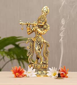 HomeHomeSpiritualIdolsKridayKraft Lord Krishna Metal Statue,Krishna Murti Playing Flute for Temple Pooja,Decor Your Home,Office & Gift Your Relatives,Showpiece Figurines,Religious Idol,Gift Article...
