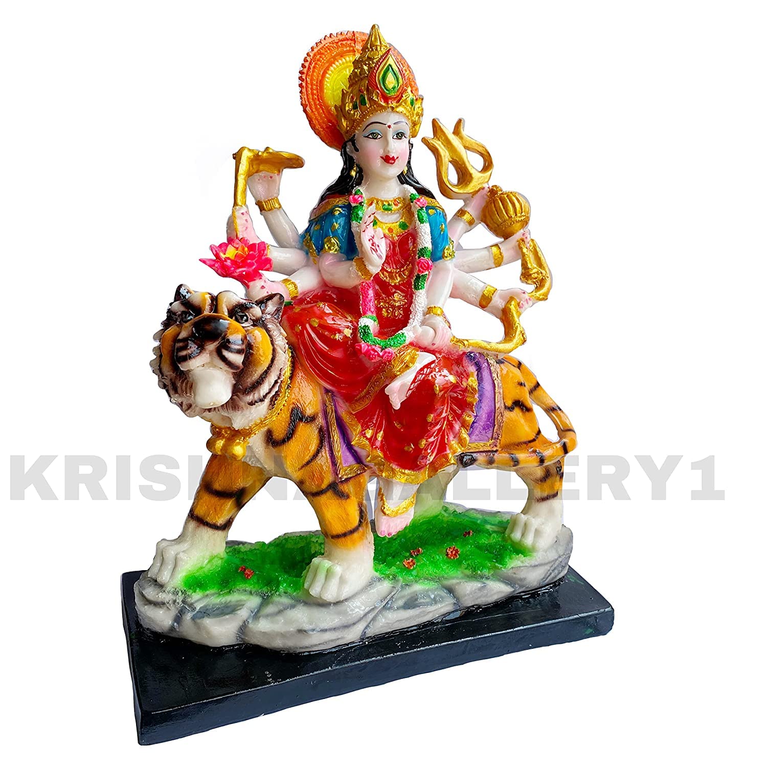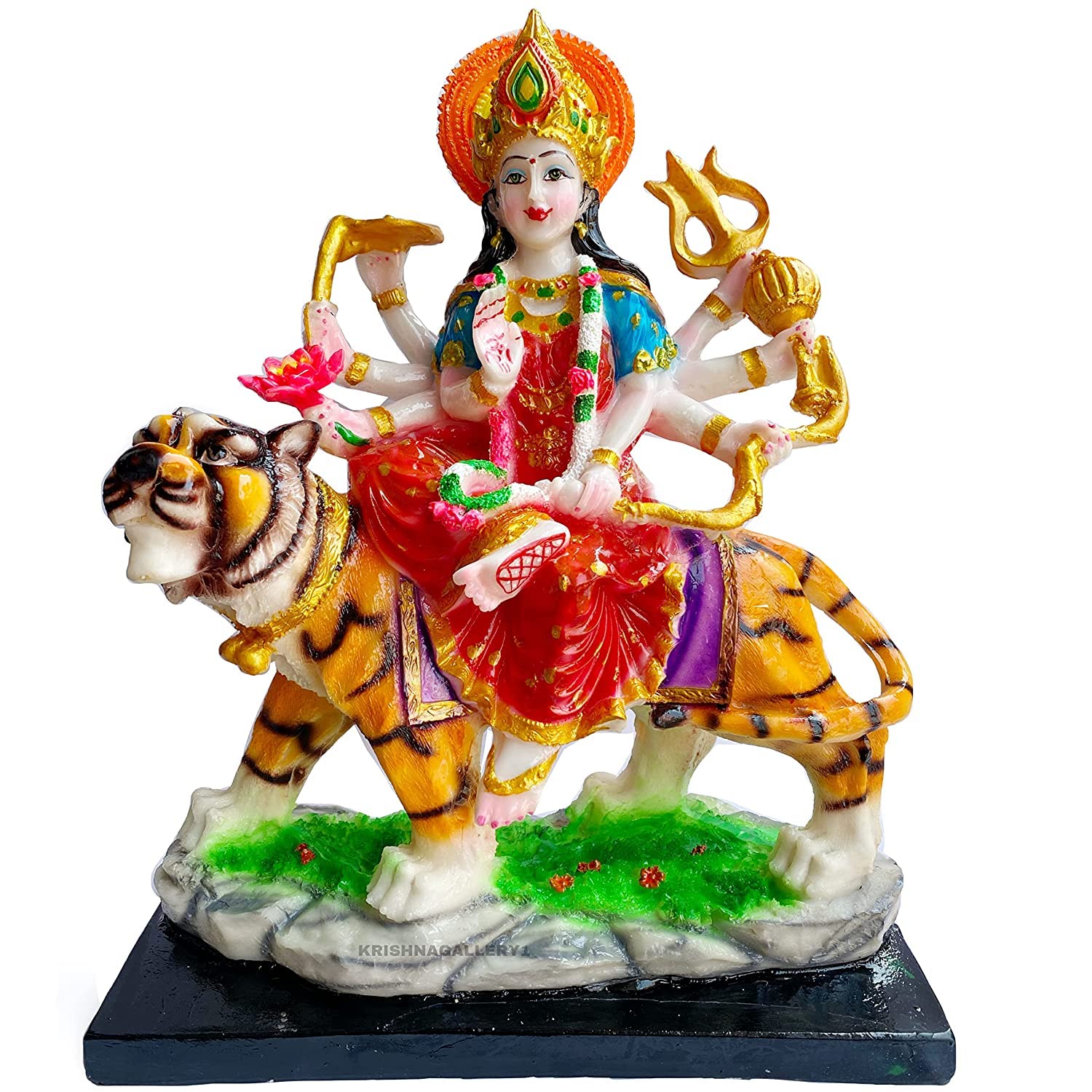HomeHomeSpiritualIdolsKRISHNAGALLERY1 Marble Dust Sherawali MATA Durga Maa Idol Vaishno Devi Murti for Pooja Room Home Temple Idol 15 Inches Multicolor
