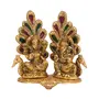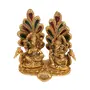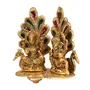 Laxmi Ganesh Set Idol Showpiece Diya Oil Lamp - Metal Lakshmi Ganesha Statue Idol Murti (Golden 5.5 x 5.5 x 4 Inches)