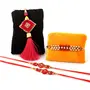 HomeHomeSpiritualIdolsMEENAKARI ENAMEL PRODUCTS Resin Buddha Idol Raksha Bandhan Greeting Roli Rice Pack and 4 Rakhi Gifts Combo Set (Black and Golden 10 cm x 7 cm x 16 cm)