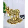 Color:Kamdhenu Godess | Display t:1200.0 Gramskamdhenu is the sacred wish-cow & grants all wishes and desires in Hindu mythology kamdhenu is divine cow. prince home decor and gifts brings yous this divine cow lives in heaven emerged from the ocean of milk at the time of samudra manthan every part of kamdhenu's body has a religious significance. its four legs symbolize the four vada's and teats the four purusharthas. its horns symbolize the God's its face symbolize the sun and the moon. its sholder's agni and its leg's the himalayas. In Bhagwat Gita Lord Krishna refers to kamdhenu as kamadhuk. He also declares that amoung cows he is kamadhuk. rince Home Decor & Gifts brings you an unique antiques religious kamdhenu cow with calf with krishna standing on metal base. The product is gold plated with antique finish so looks very beautiful and use for the purpose of worship and for home decorative.Beautiful creation of kamdhenu cow & calf is a perfect symbol of the undying aura of the holy saint that encompasses numerous devotees round the globe. This statue aptly conveys the emotions of people who consider cow (gomatha) as a motherly figure. Kamdhenu cow & calf statues are widely used for decoration purposes in homes and offices. It serves as a great gift especially around religious celebrations and festivities. Presenting You a wide range of showpieces.Featuring a cow with her Small on circular stand in gold color. Made out of hard material to give this showpiece an amazing look.The name Kamadhenu came from the Sanskrit root "Kamaduha" which literally means "the cow of plenty" and "the one through whom all desires are fulfilled".It is believed that each part of the kamdhenu cow embodies a particular deity & is worshipped as the divine wish-fulfilling cow goddess according to Hindu mythology. This divine cow which lives in swargalok (heaven) emerged from the ocean of milk (kshira-sagar) at the time of samudra-manthan (the great churning of the ocean by the gods (suras) and demons (asuras).