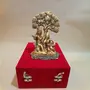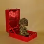 Introducing the exquisite Metal Radha Krishna Idol beautifully showcased under a magnificent tree accompanied by a stunning red box. This intricately crafted idol captures the essence of divine love and spiritual bliss making it a cherished addition to your home or sacred space. The Metal Radha Krishna Idol sits gracefully under the intricately detailed tree symbolizing the divine union and eternal love between Lord Krishna and Radha. Every delicate feature is expertly sculpted revealing the devotion and craftsmanship behind this masterpiece. Measuring at LxWxH (5x3x7) inches this idol is perfectly sized to create a captivating presence in any room. The solid metal construction ensures durability and longevity while its weight of 240g adds a sense of stability and substance to its presence. The accompanying red box adds to the allure of this divine creation. With dimensions of LxWxH (9.1x7.8x4.1) inches the box not only serves as a protective casing but also enhances the presentation of this sacred art piece. The vibrant red color symbolizes passion love and auspiciousness enhancing the overall aesthetic appeal. Whether you wish to enhance your spiritual practices decorate your home with divine grace or present a meaningful gift to someone dear the Metal Radha Krishna Idol with its accompanying red box is a true embodiment of elegance and spirituality. Immerse yourself in the divine presence of Lord Krishna and Radha and let their love and blessings fill your life with joy and serenity.