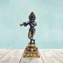 Mohan Jodero Handicrafts Beautiful Handmade divine lord Krishna Statue made of brass with golden finish. Hindu Krishna standing playing flute is Symbol Of love & happiness. Their love is common spiritual love affair between divine Krishna and his devotee Radha. Krishna is supreme God krishna supposed to control with her deep love. Krishna statue can be used for pooja or to decorate your home. Krishna Statue are also very happy figures to have in your home.